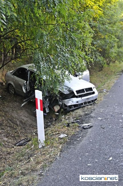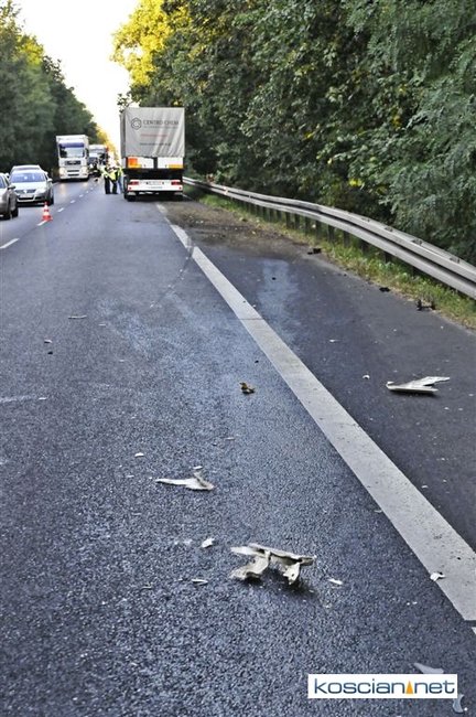 Do wypadku doszło w poniedziałek około godziny 17.00 na drodze krajowej nr 5 pomiędzy Głuchowem a Jarogniewicami. Jadące w kierunku Kościana audi zjechało nagle na lewy pas ruchu wprost po jadącego tira. 61-letni kierowca osobówki wyszedł z wypadku bez poważniejszych obrażeń, natomiast 45-letnią pasażerkę w stanie ciężkim przewieziono do kościańskiego szpitala. Trwa ustalanie okoliczności wypadku.