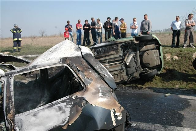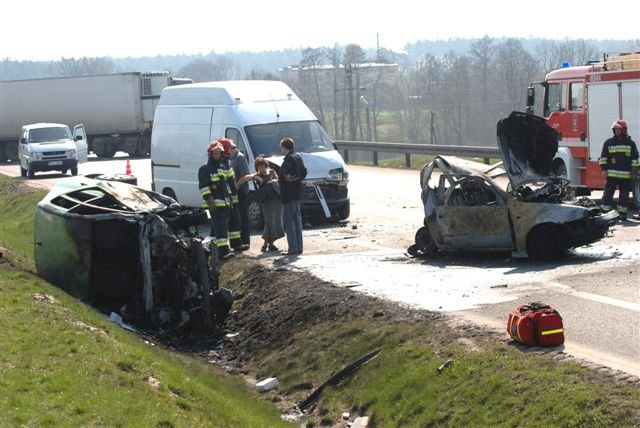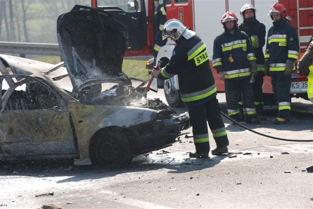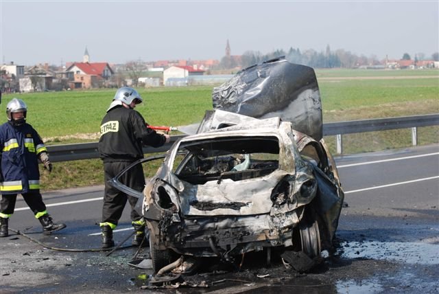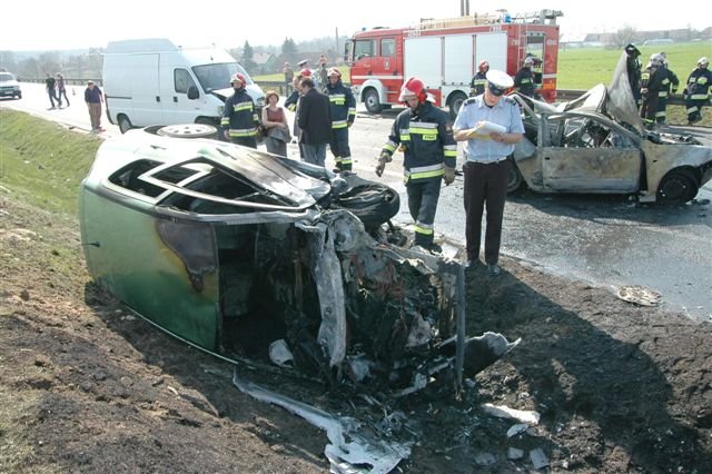 Dwa samochody stanęły w płomieniach. W jednym pozostał uwięziony kierowca. Może on mówić o wielkim szczęściu w nieszczęściu. Tuż po wypadku drogą przejeżdżała grupa motorowa kościańskiego Stowarzyszenia na Rzecz Zapobiegania Wypadkom Drogowym „Stop Śmierci”