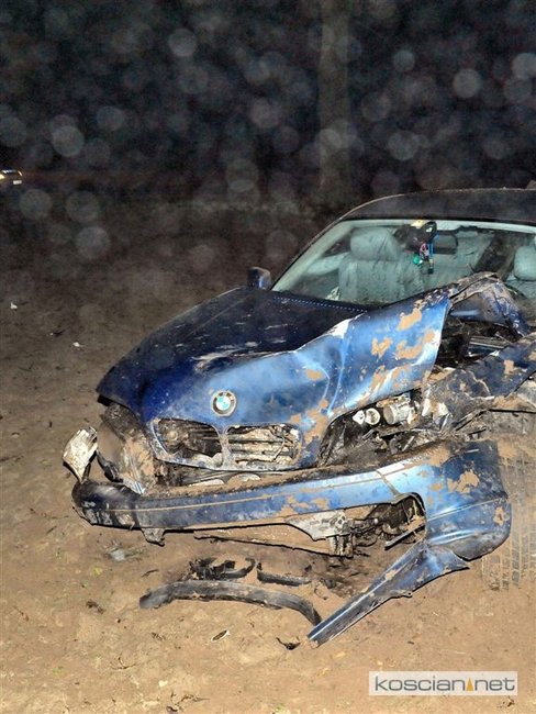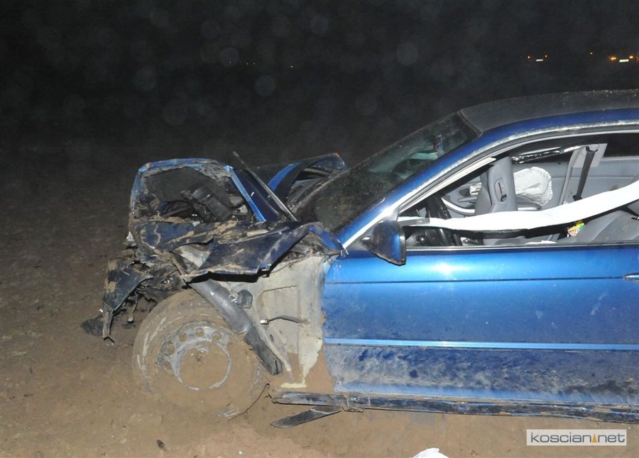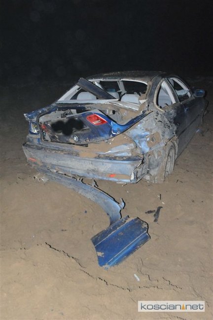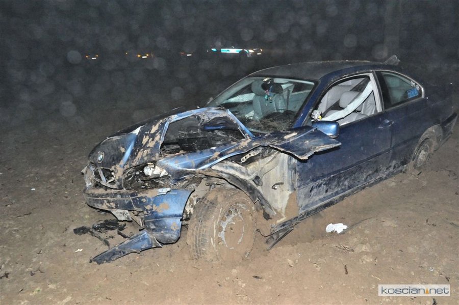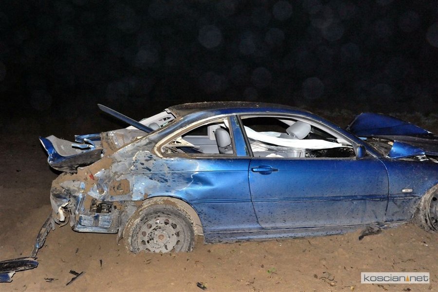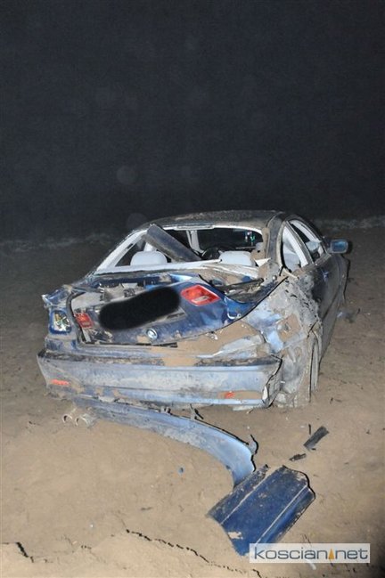BMW na kościańskich numerach rejestracyjnych wypadło z drogi i kilkukrotnie koziołkowało.
