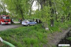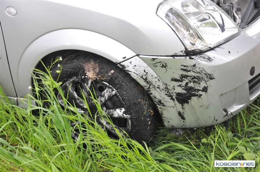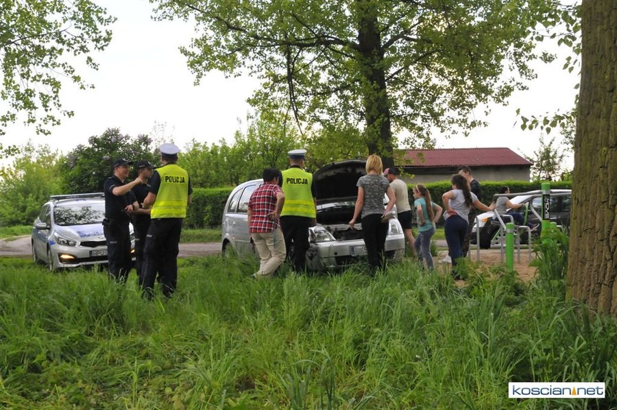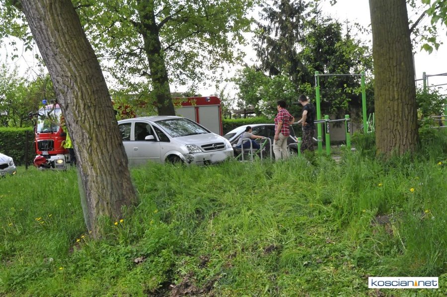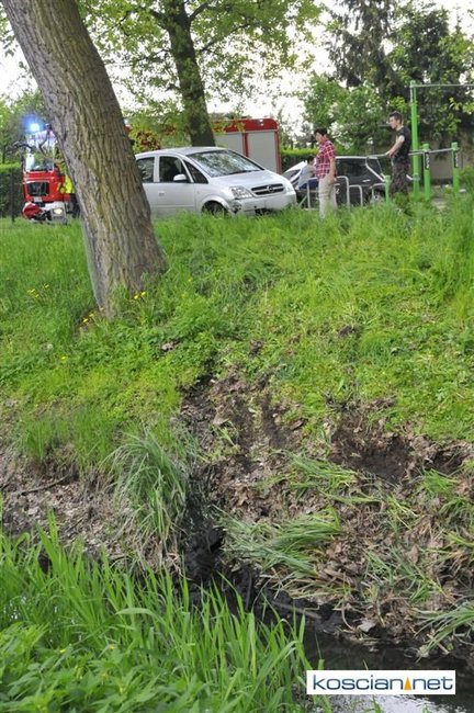 Strażacy wyciągali opla z rowu przy kościańskich Łazienkach.