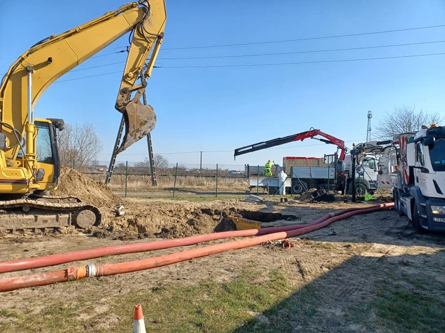 Naprawiany fragment odcięto od sieci, a ścieki są przepompowywane do oczyszczalni przez kilka dużych pomp. W naprawę zaangażowani są pracownicy wodociągów z działu sieci i oczyszczalni oraz firma Cons Control System.