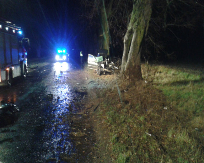 W nocy z soboty na niedzielę, na prostym odcinku drogi pomiędzy Racotem a Starym Luboszem BMW zjechało na pobocze i uderzyło w drzewo.