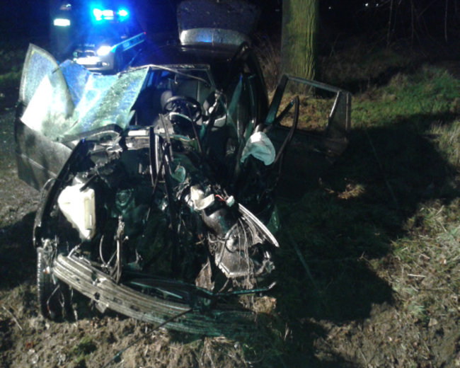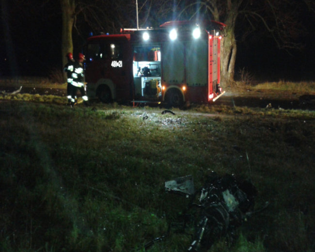 - O dużym szczęściu mogą mówić dwaj mężczyźni z gminy Kościan, podróżujący tym samochodem. Na prostym odcinku drogi ich auto zjechało na pobocze i uderzyło w drzewo. Silnik leżący kilkanaście metrów od auta oraz porozrzucane na dużym obszarze elementy karoserii mogą świadczyć o sile tego uderzenia – informuje Andrzej Ziegler, zastępca Komendanta Powiatowego PSP w Kościanie.
