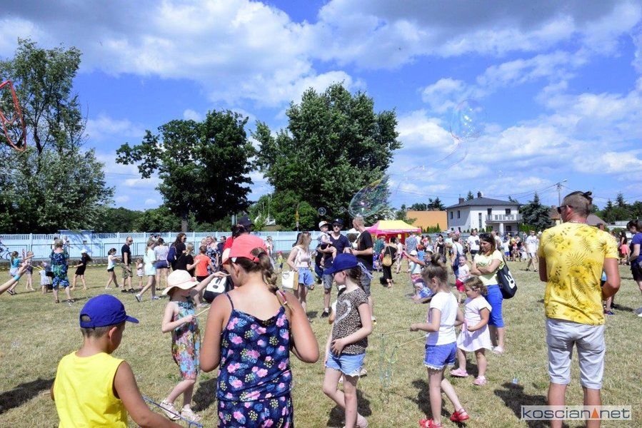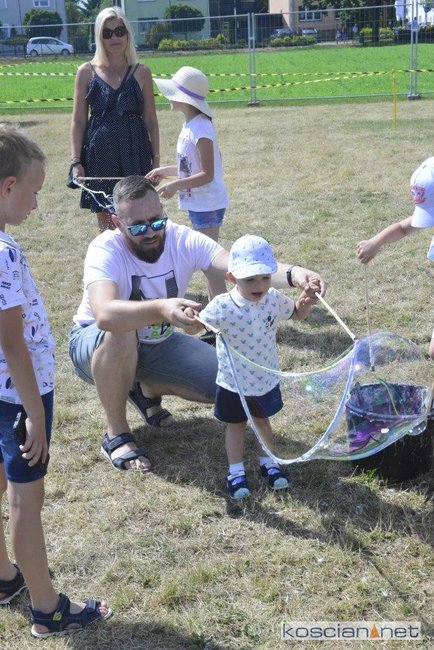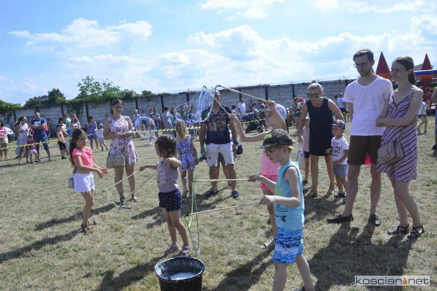 Impreza dla dzieci odbyła się w niedzielę, 27 czerwca, na boisku SP1. Dla uczestników przygotowano wiele atrakcji: zamykanie w bańkach mydlanych, konkursy z nagrodami, dmuchane zamki i zabawę z proszkami holi.