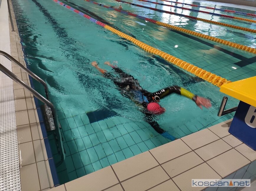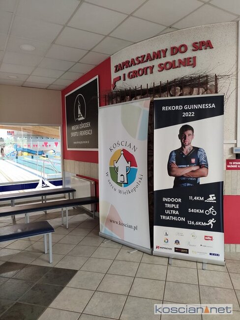 Patryk Hampel rozpoczął na kościańskiej pływalni próbę ustanowienia Rekordu Guinnessa w potrójnym Ironmanie na hali. Wydarzeniu towarzyszy bieg charytatywny dla Kai z Kościana.