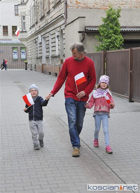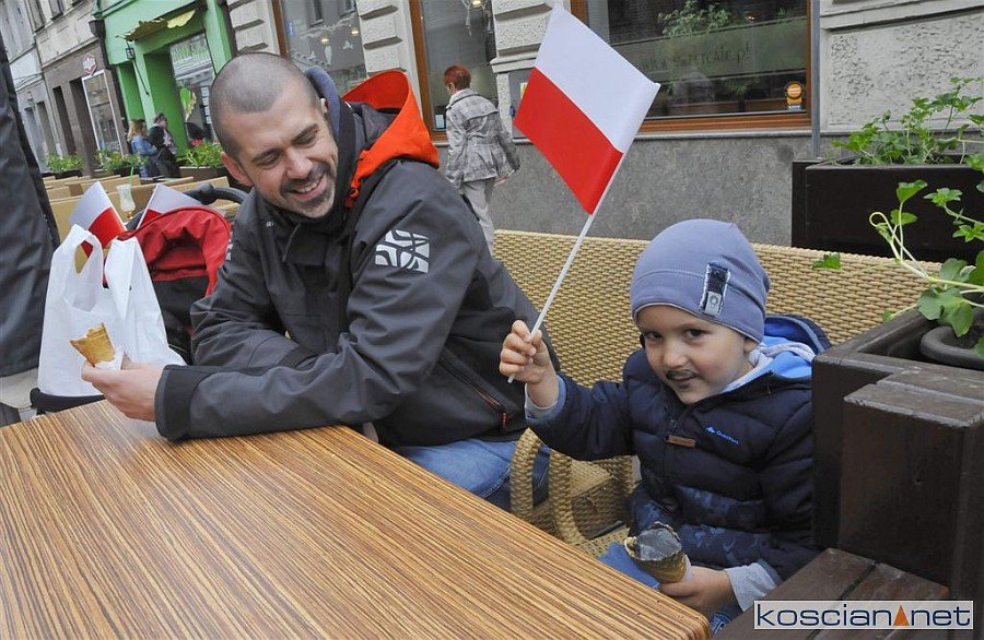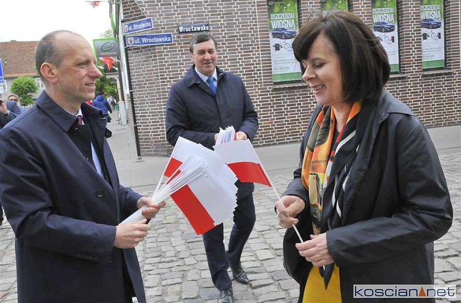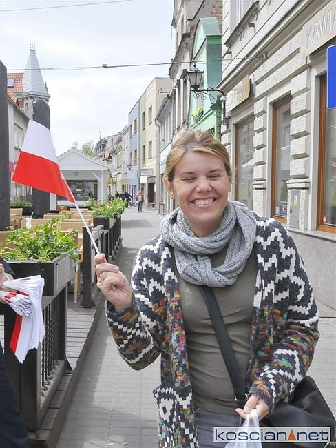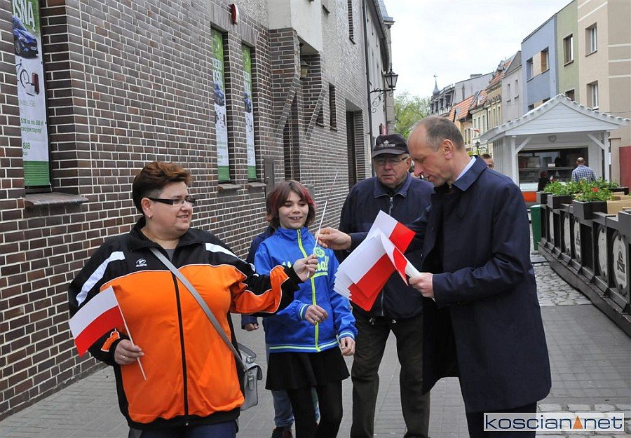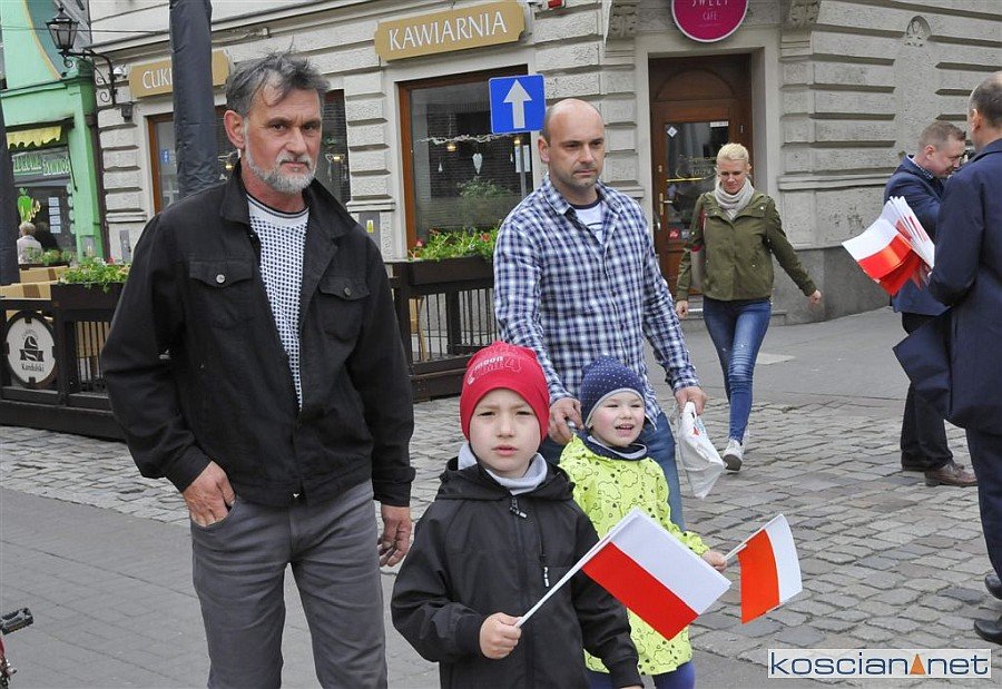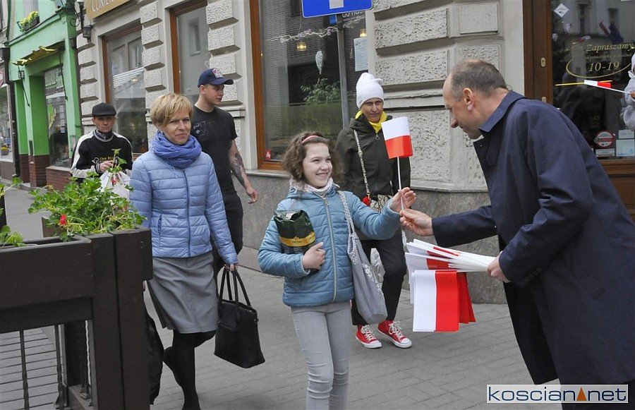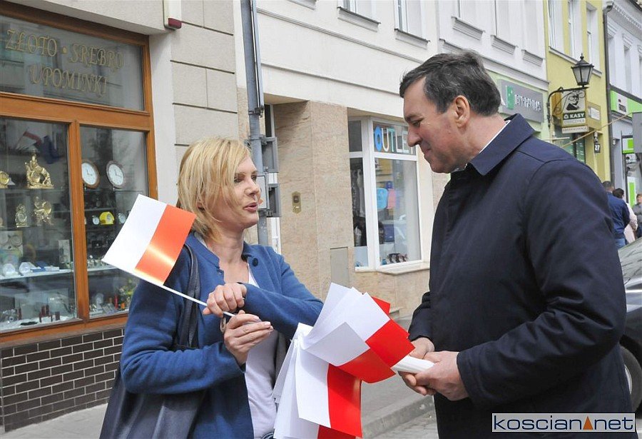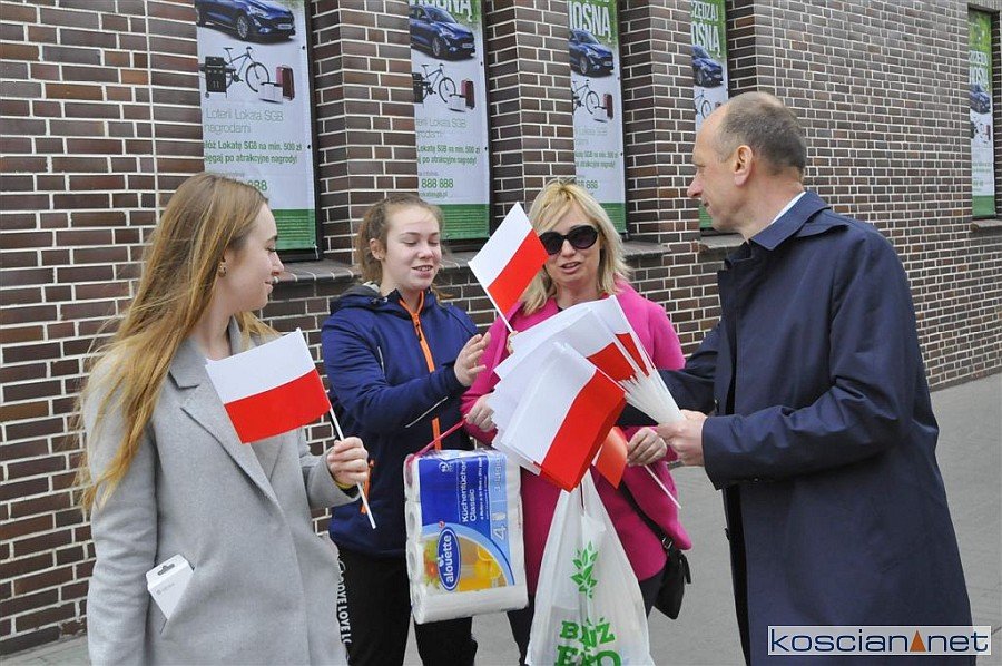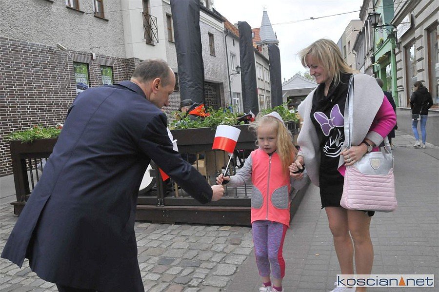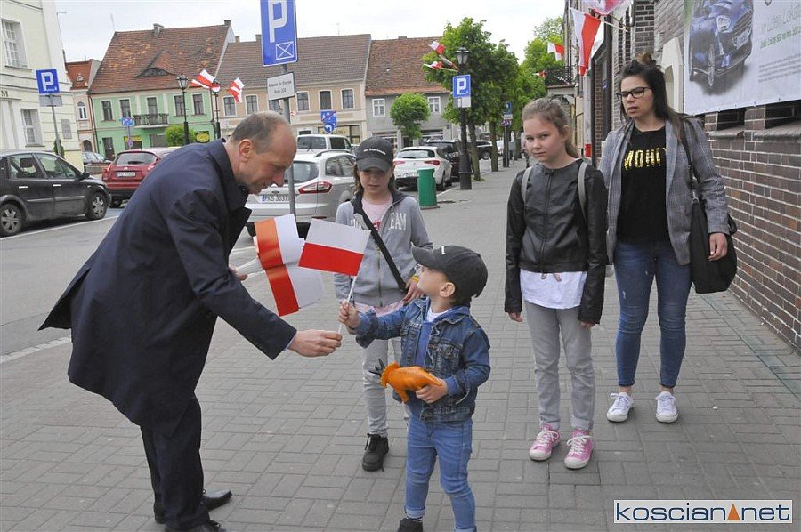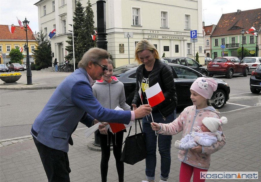 W Dzień Flagi Rzeczypospolitej Polskiej na kościańskim Rynku rozdano blisko tysiąc biało-czerwonych chorągiewek.