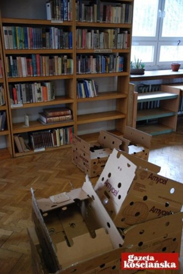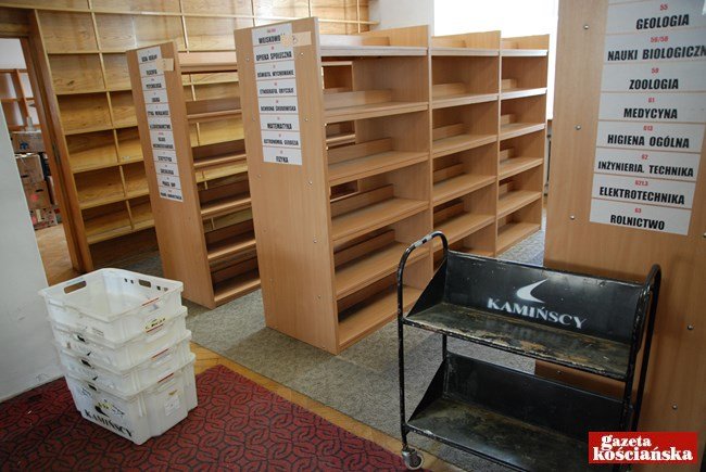 Niespełna tydzień wystarczył, aby przewieźć 90 tysięcy woluminów i wyposażenie Miejskiej Biblioteki Publicznej w Kościanie do tymczasowej siedziby w Kolegium UAM.