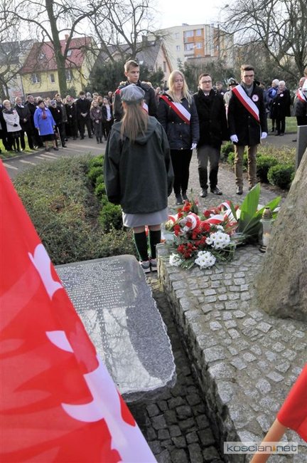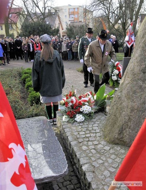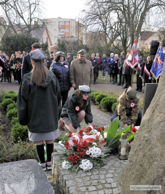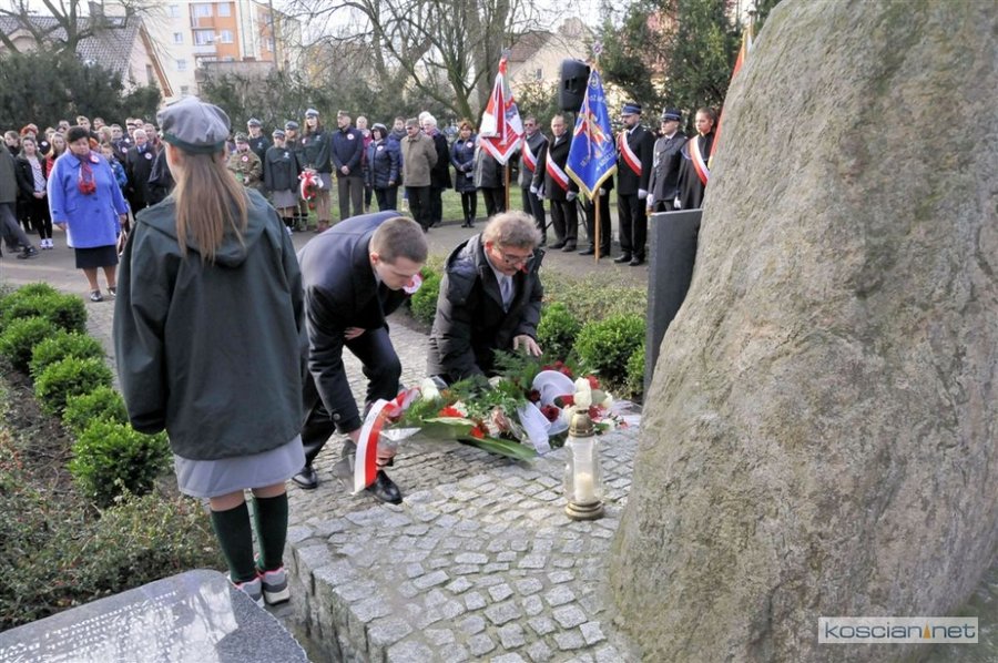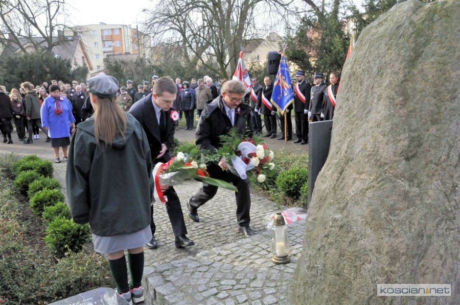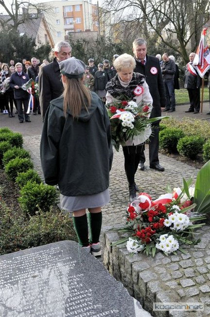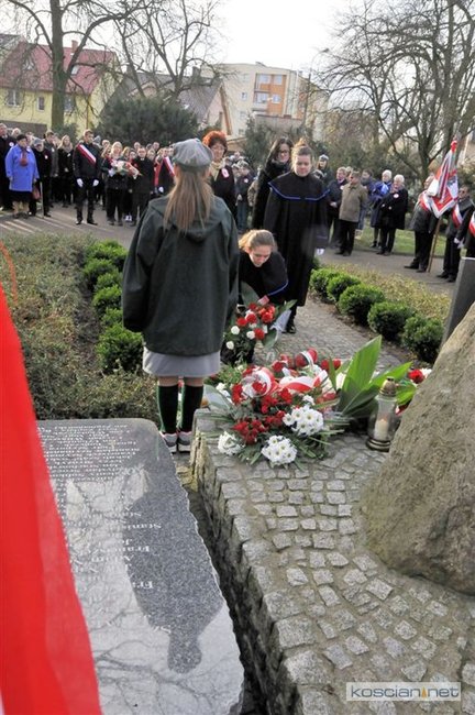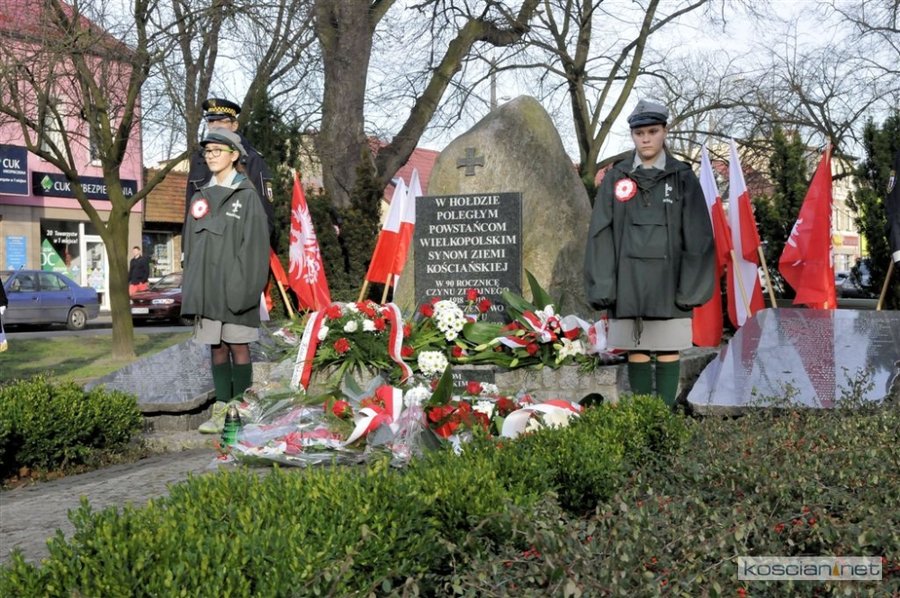 W samo południe wiązanki kwiatów pod Pomnikiem Powstańców Wielkopolskich złożyli parlamentarzyści, delegacje władz samorządnych miasta, gminy i powiatu, przedstawiciele szkół, instytucji, służb i organizacji społecznych. Uroczystość uświetnił występ Orkiestry Dętej OSP Kościan. Uczestnicy uroczystości otrzymali symboliczne powstańcze rozety.