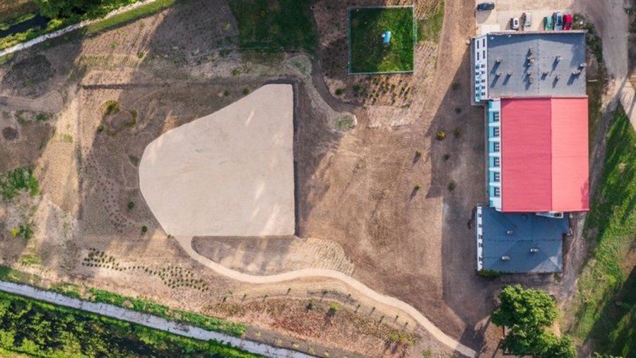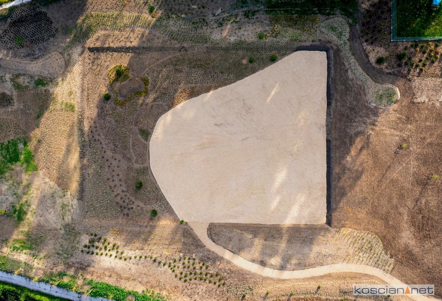 Wygląda intrygująco? To widziany z góry teren, na którym był niegdyś odkryty basen pływacki na kościańskich Łazienkach.