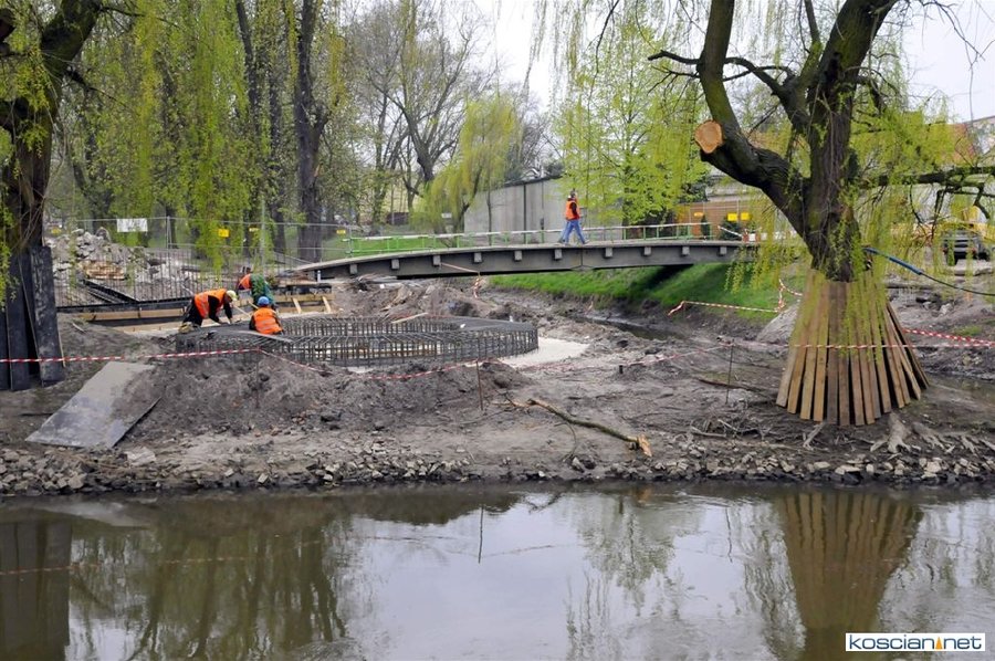 Zaglądamy na plac budowy mostków powstających przy zbiegu Kościańskiego Kanału Obry z Kanałem Ulgi przy ulicy Mostowej w Kościanie.