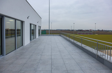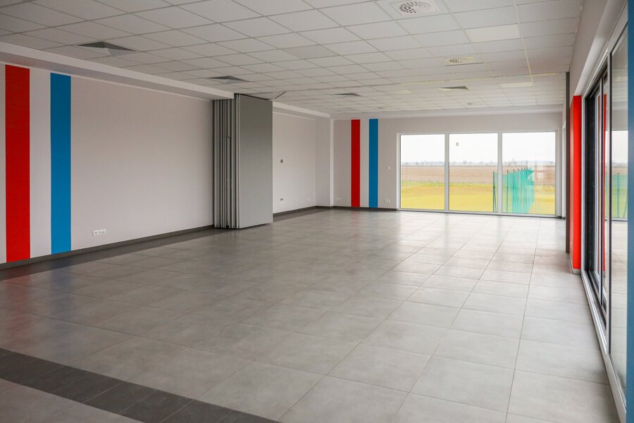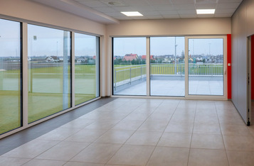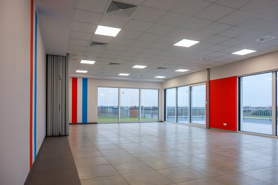 Na parterze znajdują się ogólnodostępne toalety dostępne z zewnątrz. Na piętrze zlokalizowana jest poczekalnia dla osób towarzyszących wraz z aneksem kuchennym i toaletami oraz salka spotkań. Z salki prowadzi wyjście na taras z widokiem na kompleks boisk sportowych.