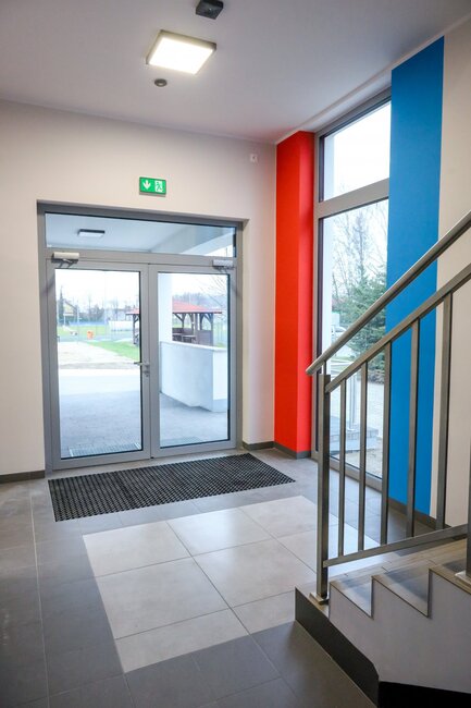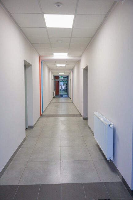 Budynek wyposażony jest w instalacje: wodociągową, kanalizacji sanitarnej, kanalizacji deszczowej, wentylacji mechanicznej, ciepłej wody użytkowej i centralnego ogrzewania z własnego źródła w postaci pompy ciepła powietrze-woda, a także elektryczną, teletechniczną, oświetlenia zewnętrznego i odgromową. Teren wokół budynku został utwardzony i zagospodarowany.