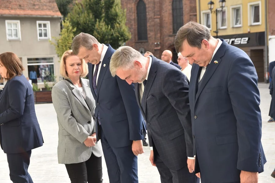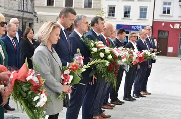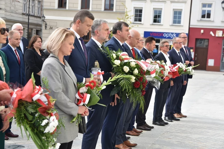 Po wystąpieniach burmistrza, marszałka i starosty wszyscy uczestnicy spotkania oddali hołd ośmiu Polakom rozstrzelanym 2 października 1939 roku przez niemieckiego okupanta.