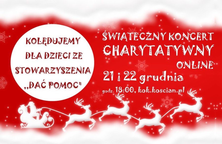 Zgodnie z tradycją zapraszamy, wraz z Kościańskim Ośrodkiem Kultury na Świąteczny Koncert Charytatywny. W tym roku, ze względu na pandemię, koncert odbędzie się online w formie audio-wizualnej.
