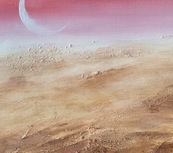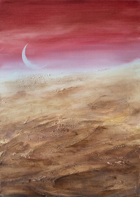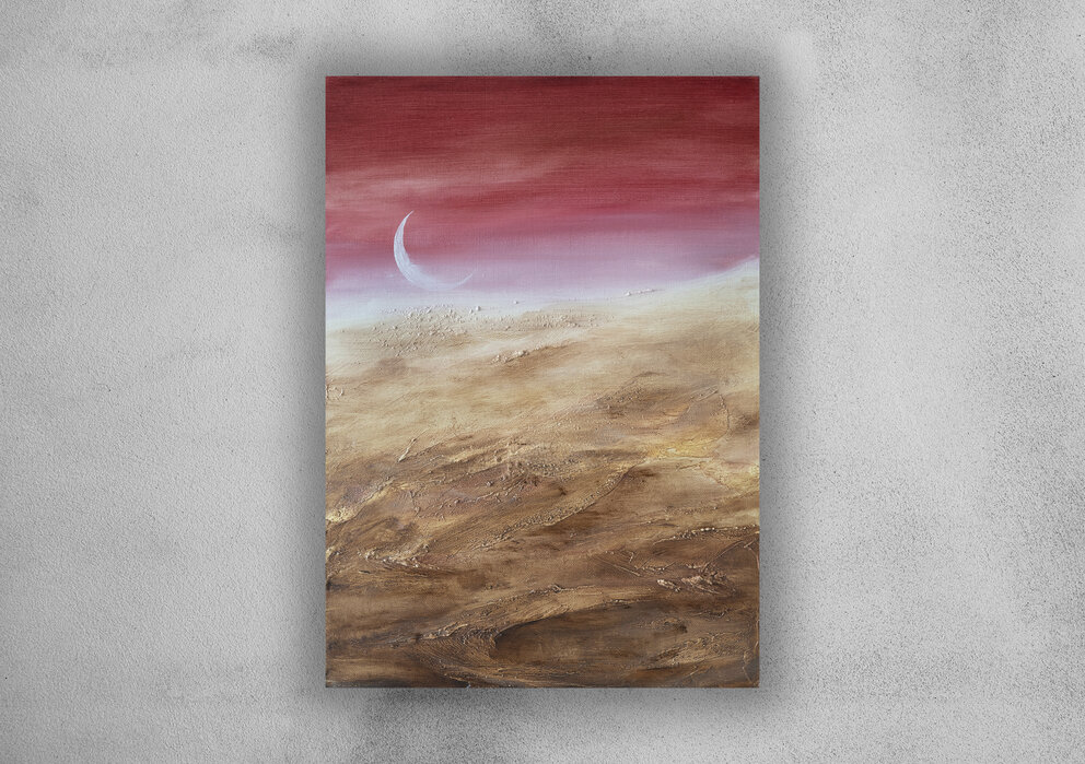 Na aukcję wystawiamy obraz olejny na płótnie (panelu malarskim) zatytułowany Inner landcape 48 o wymiarach 35x25cm.