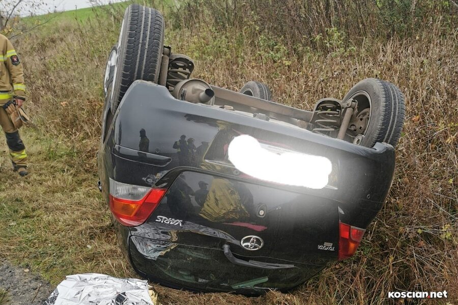 - Kierująca toyotą, 64-letnia mieszkanka gminy Czempiń, chcąc uniknąć zderzenia z samochodem jadącym z naprzeciwka na jej pasie, zjechała na pobocze gdzie jej samochód dachował – informuje Jarosław Lemański, oficer prasowy KPP w Kościanie.