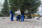W południe rozpoczęło się strojenie choinki siedmioma tysiącami światełek. Jak co roku „choinkowemu” pomaga w tym Mariusz Odważny oraz operator podnośnika koszowego. Późnym wieczorem ustrojone przez nich drzewko jest gotowe.