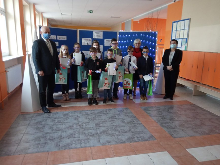 W reżimie sanitarnym podsumowano szkolenie i konkurs. W spotkaniu oprócz laureatów wzięli też udział: dyrektor szkoły Beata Kubacka, inspektor Bożena Szczawik-Musiał i wójt Andrzej Przybyła. Upominki (półprzyłbice i czekoladowe mikołaje), pamiątkowe dyplomy i wyróżnienia za udział odebrali: Klaudia Jurga, Kacper Kaczmarek, Lena Karaś, Wiktoria Kacperek, Adam Piosik, Filip Sobierajewicz, Jakub Wojciechowski i Szymon Wojtaszek. Podsumowaniu szkolenia ,,Chroń siebie i otoczenie’’ towarzyszyła wystawa prac uczniów.