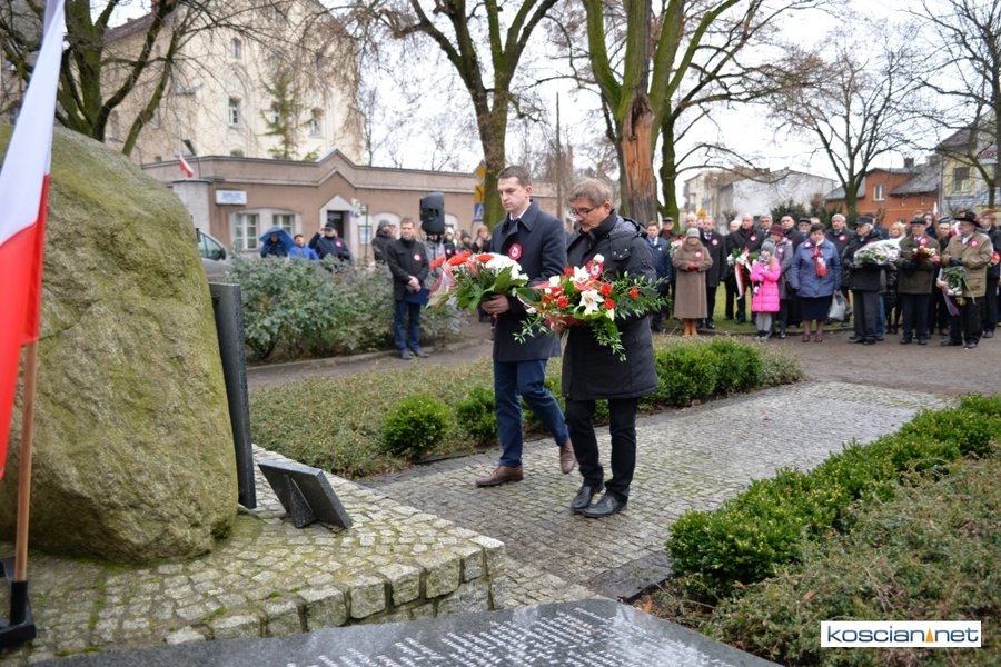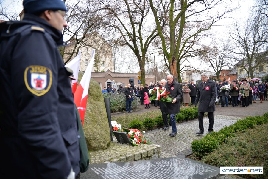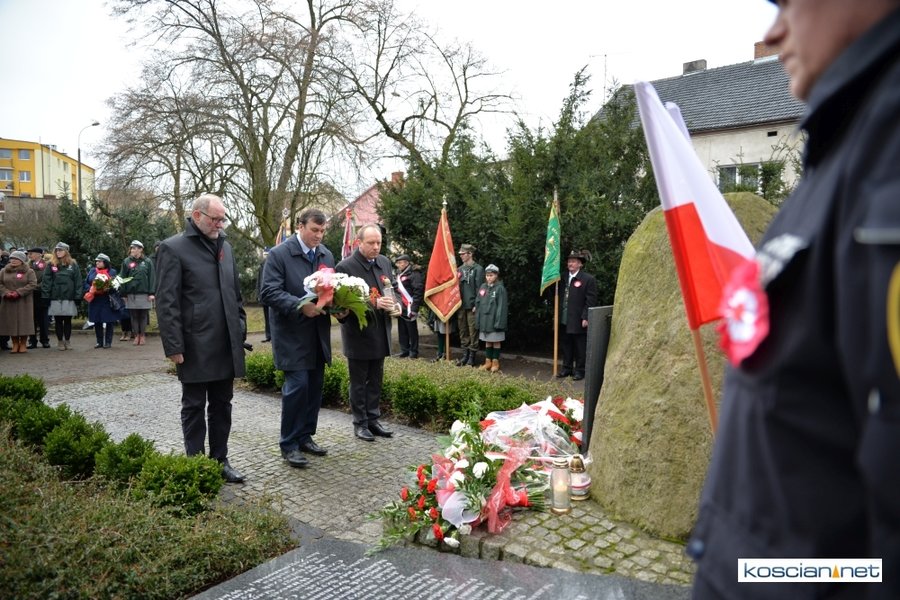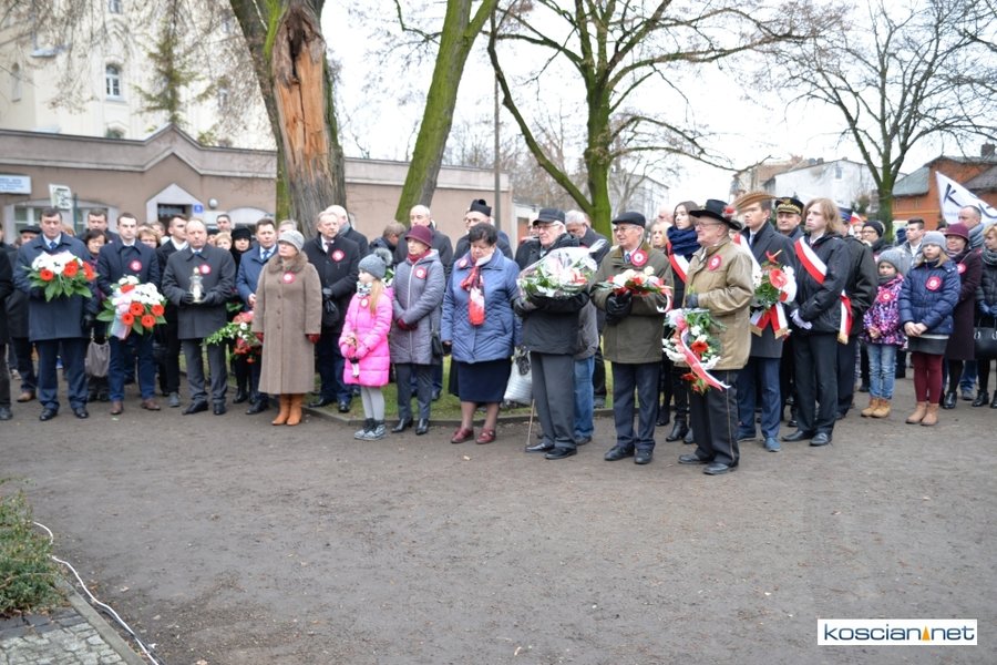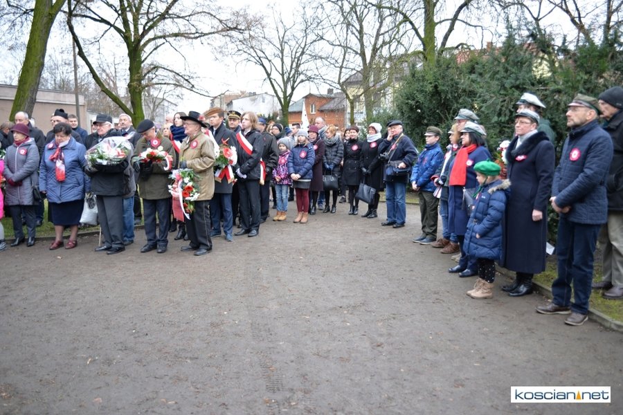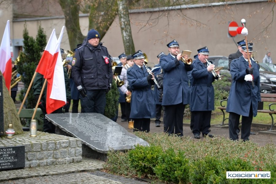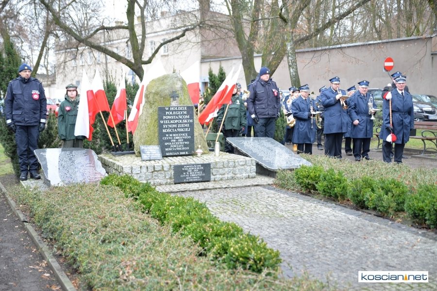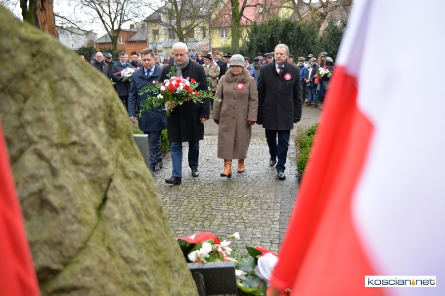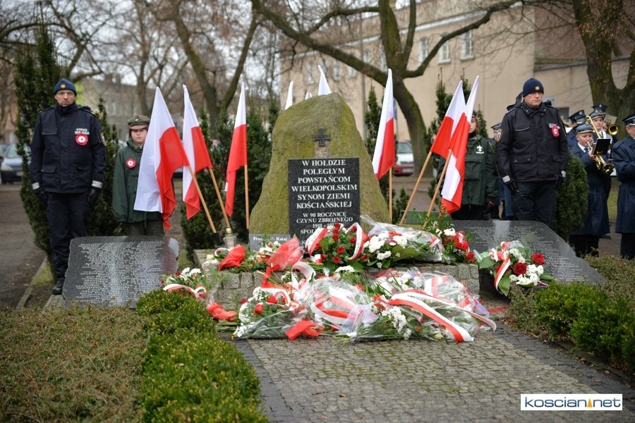 W samo południe pod Pomnikiem Powstańców Wielkopolskich w Kościanie delegacje złożyły wiązanki kwiatów. Na placu nie zabrakło parlamentarzystów Adama Szłapki i Wojciecha Ziemniaka, przedstawicieli władz samorządowych miasta, gminy Kościan i powiatu kościańskiego, kombatantów, delegacji instytucji, organizacji społecznych i szkół, harcerzy, mieszkańców miasta i okolic. Wszyscy uczestnicy uroczystości otrzymali biało-czerwone rozety powstańcze, symbol trudu i determinacji Wielkopolan w walce o wolność. O oprawę muzyczną zadbała Orkiestra Dęta OSP Kościan.