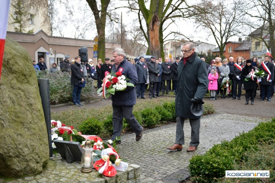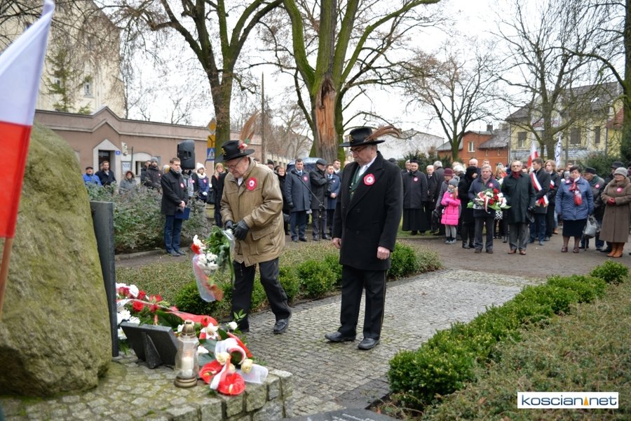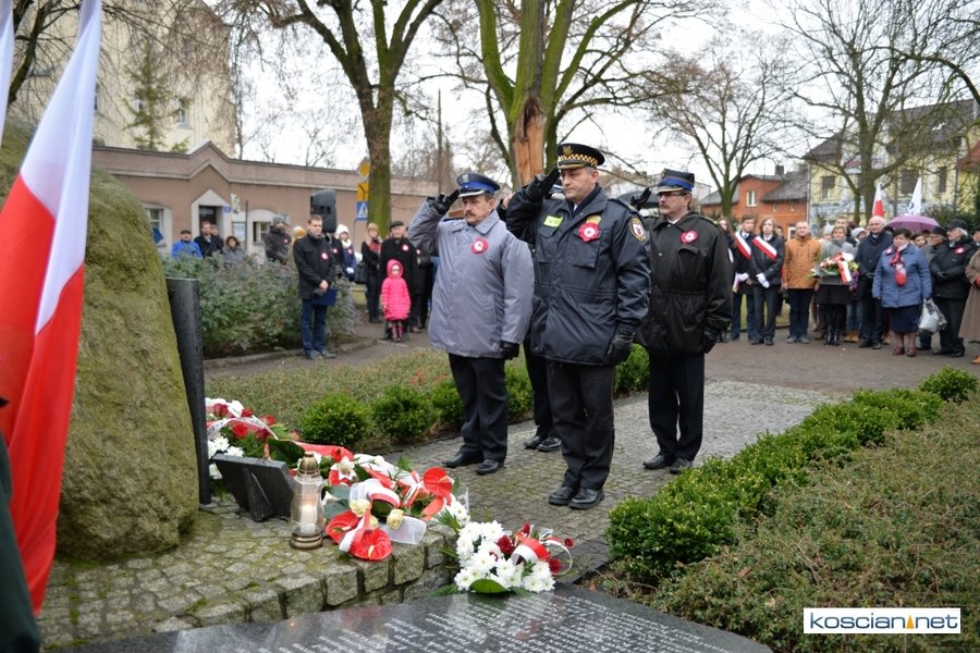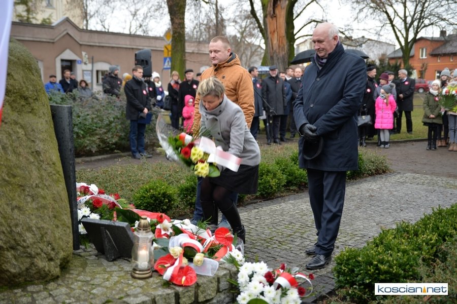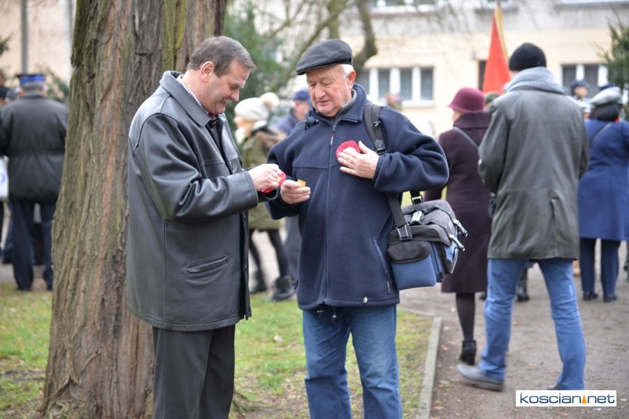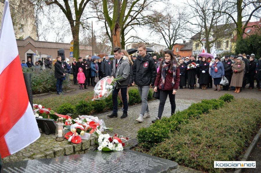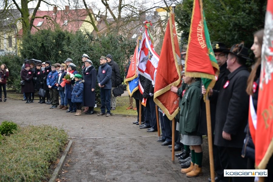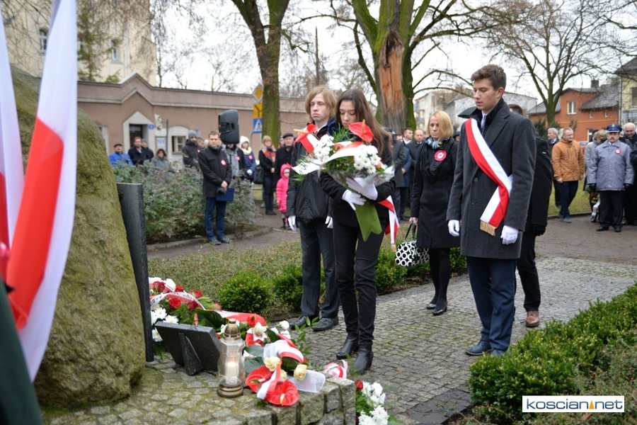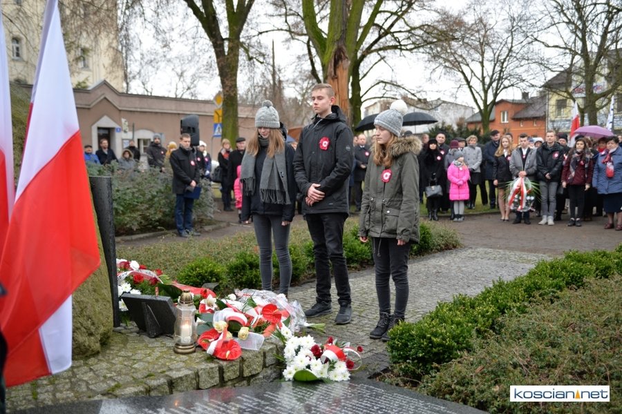 W samo południe pod Pomnikiem Powstańców Wielkopolskich w Kościanie delegacje złożyły wiązanki kwiatów. Na placu nie zabrakło parlamentarzystów Adama Szłapki i Wojciecha Ziemniaka, przedstawicieli władz samorządowych miasta, gminy Kościan i powiatu kościańskiego, kombatantów, delegacji instytucji, organizacji społecznych i szkół, harcerzy, mieszkańców miasta i okolic. Wszyscy uczestnicy uroczystości otrzymali biało-czerwone rozety powstańcze, symbol trudu i determinacji Wielkopolan w walce o wolność. O oprawę muzyczną zadbała Orkiestra Dęta OSP Kościan.