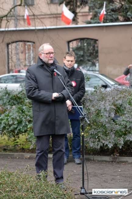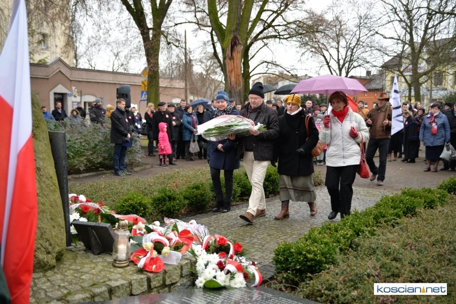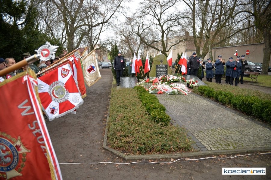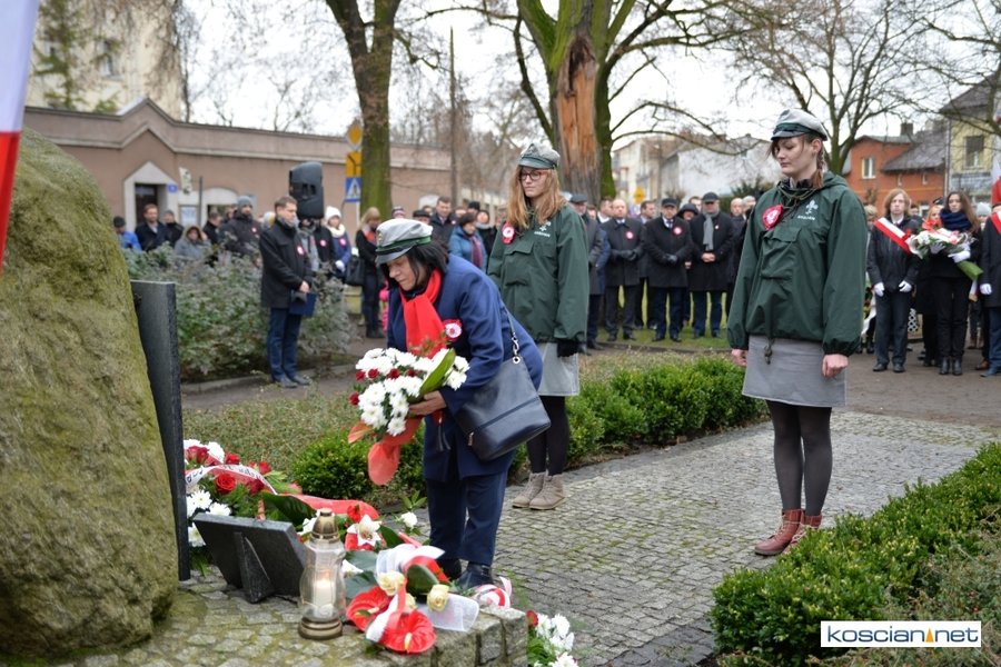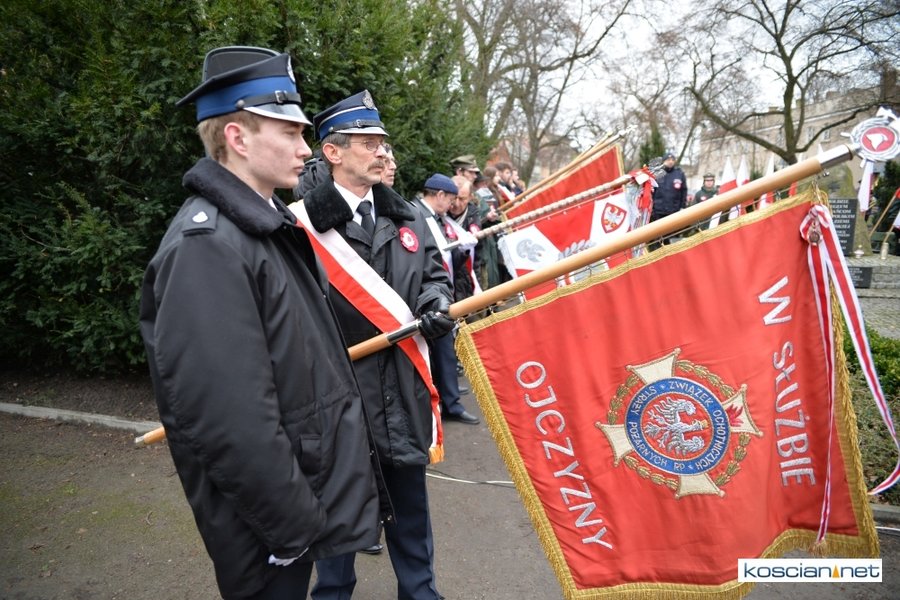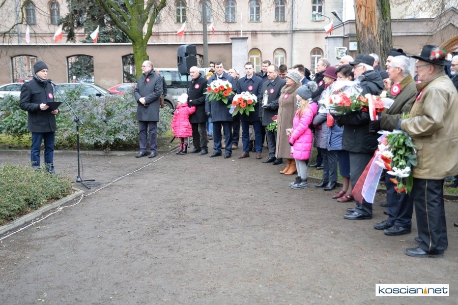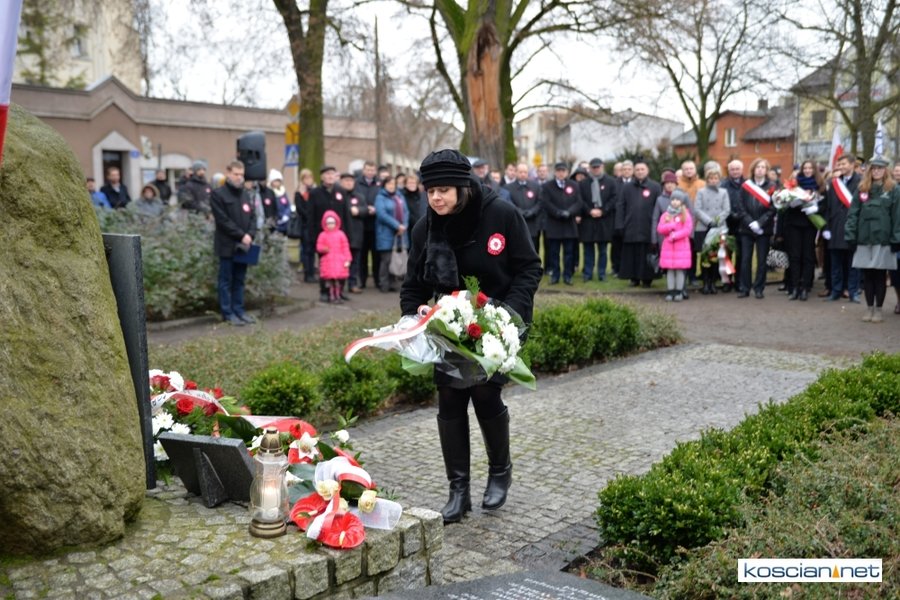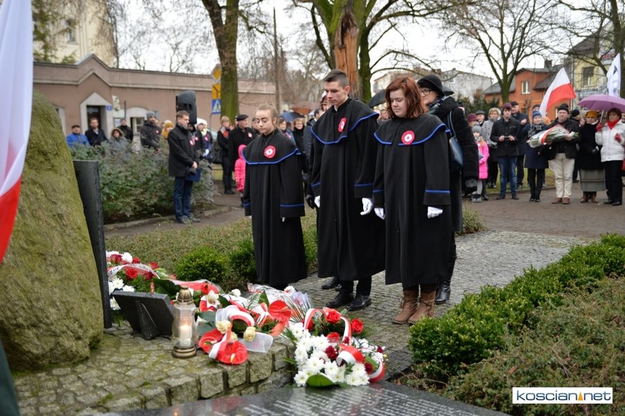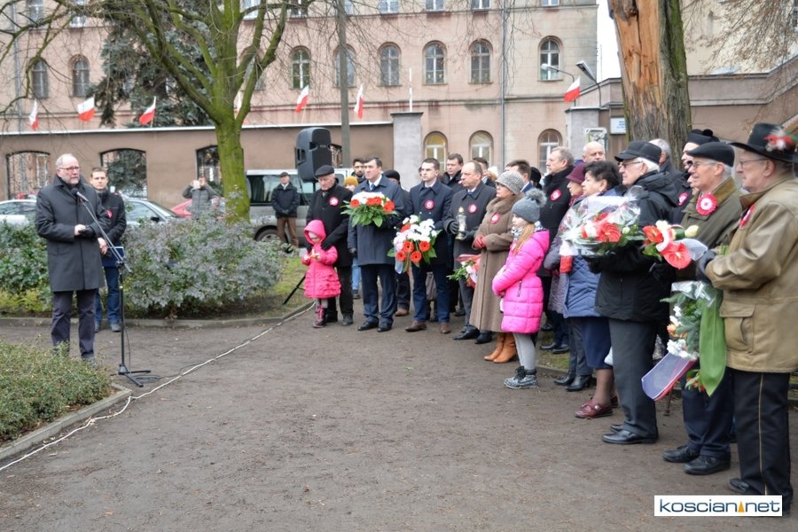 W samo południe pod Pomnikiem Powstańców Wielkopolskich w Kościanie delegacje złożyły wiązanki kwiatów. Na placu nie zabrakło parlamentarzystów Adama Szłapki i Wojciecha Ziemniaka, przedstawicieli władz samorządowych miasta, gminy Kościan i powiatu kościańskiego, kombatantów, delegacji instytucji, organizacji społecznych i szkół, harcerzy, mieszkańców miasta i okolic. Wszyscy uczestnicy uroczystości otrzymali biało-czerwone rozety powstańcze, symbol trudu i determinacji Wielkopolan w walce o wolność. O oprawę muzyczną zadbała Orkiestra Dęta OSP Kościan.