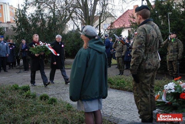 Hołd powstańcom wielkopolskim oddali m.in. poseł Wojciech Ziemniak, samorządowcy z Kościana z burmistrzem Michałem Jurgą, gminy Kościan z wójtem Henrykiem Bartoszewskim i powiatu kościańskiego ze starostą Andrzejem Jęczem, kombatanci, służby mundurowe, harcerze, przedstawiciele szkół, organizacji i instytucji. Delegacje złożyły kwiaty i znicze pod pomnikiem powstańców. O oprawę muzyczną zadbała Orkiestra Dęta OSP Kościan.