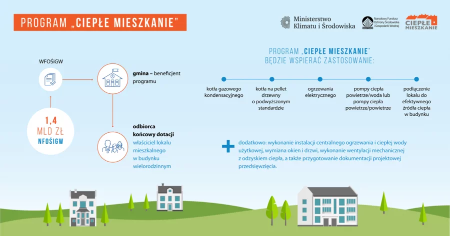 Z programu można otrzymać dofinasowanie na zakup kotła gazowego kondensacyjnego, kotła na pellet drzewny o podwyższonym standardzie, ogrzewania elektrycznego, pompy ciepła powietrze/woda lub pompy ciepła powietrze/powietrze albo na podłączenie lokalu do wspólnego efektywnego źródła ciepła.