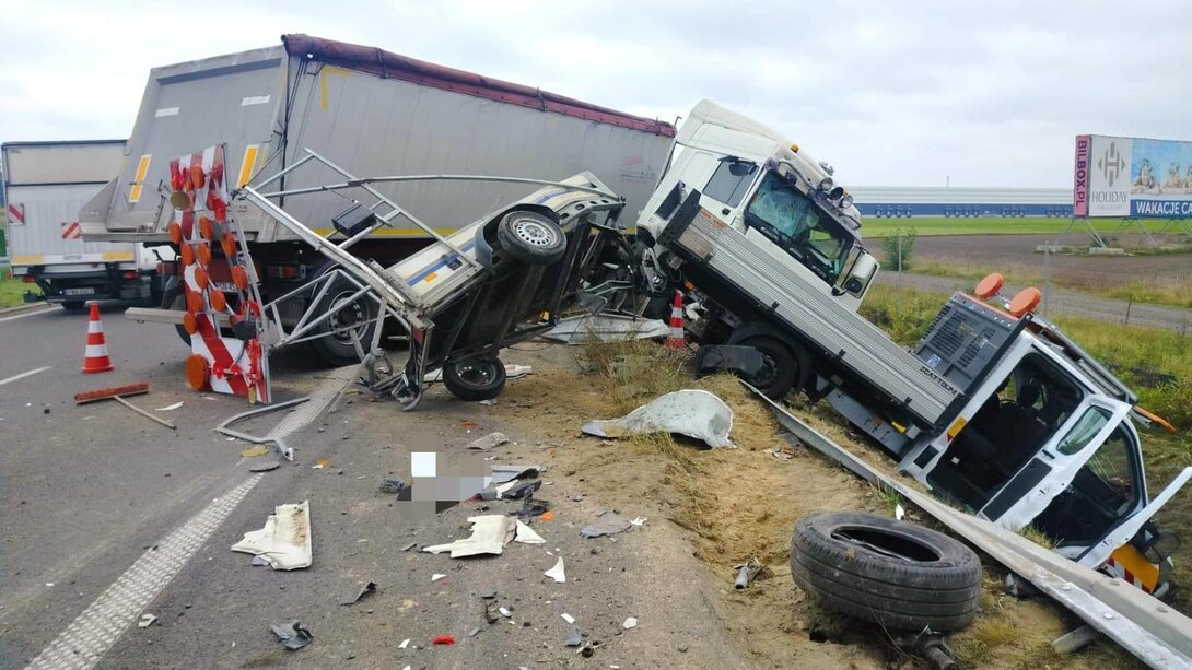 30 września 2025Ciężarówka uderzyła w pojazd służby drogowej. Ucierpiał 24-latek