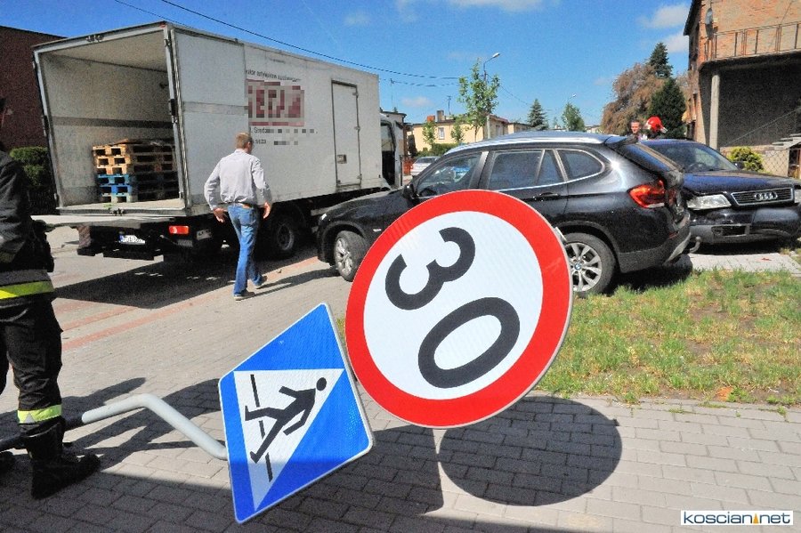 Do zdarzenia doszło po godzinie 10. Kierowca ciężarowego renault nie ustąpił pierwszeństwa przejazdu i zderzył się z prawidłowo jadącym samochodem marki BMW. Po zderzeniu bmw uderzyło najpierw w zaparkowane audi, a następnie w znak drogowy i ogrodzenie posesji. W wypadku ucierpiał kierujący bmw 70-letni mieszkaniec Kościana.