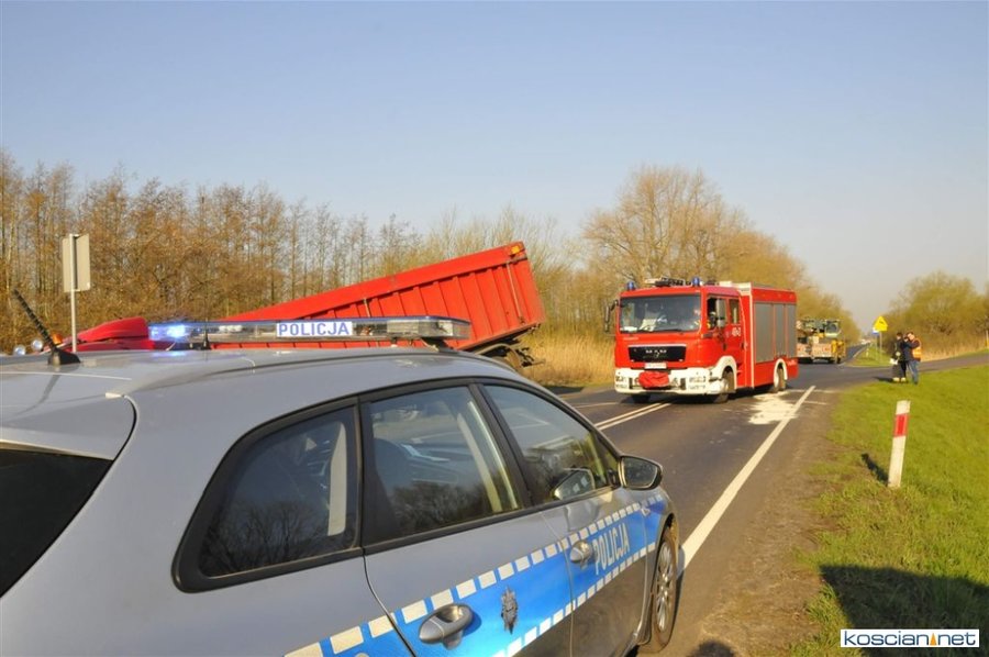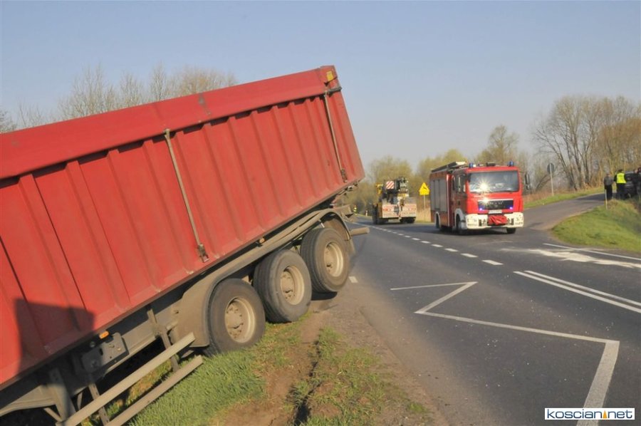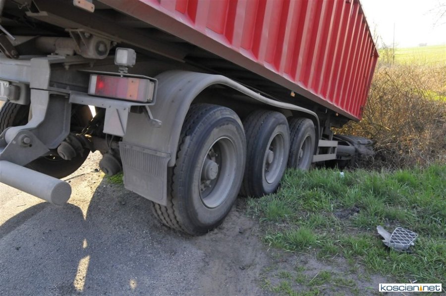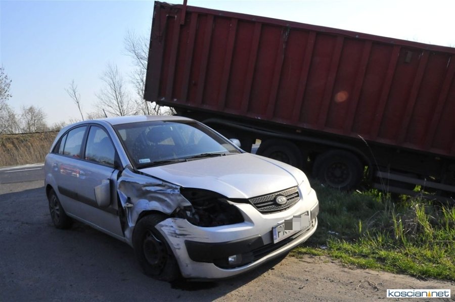 Do kolizji doszło w czwartek, 4 kwietnia, około godziny 8. pomiędzy Bonikowem a Sepnem. Jak wynika ze wstępnych ustaleń, kierująca samochodem osobowym 66-letnia mieszkanka powiatu kościańskiego, wjeżdżając na drogę wojewódzką nie ustąpiła pierwszeństwa przejazdu ciągnikowi z naczepą. Kierowca ciągnika chcąc uniknąć zderzenia wykonał manewr, po którym ciężarówka zjechała do przydrożnego rowu. Nikt z uczestników zdarzenia nie odniósł poważniejszych obrażeń.