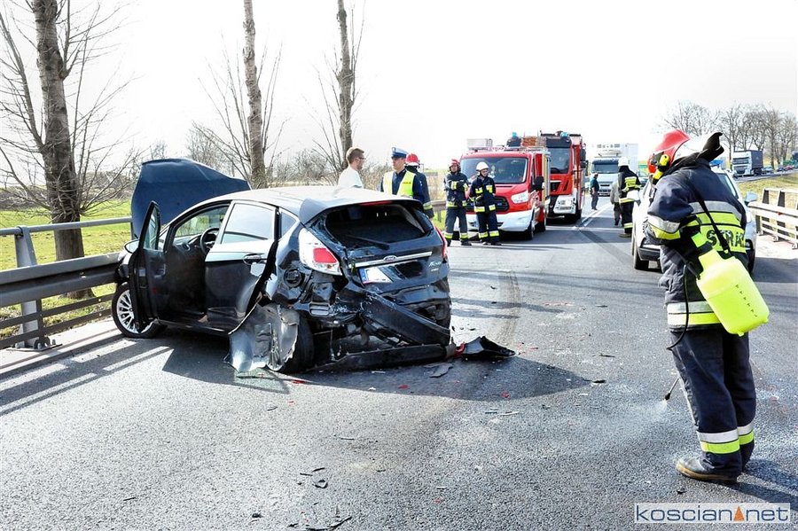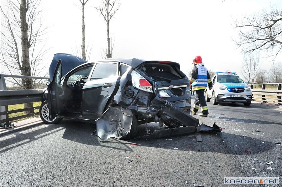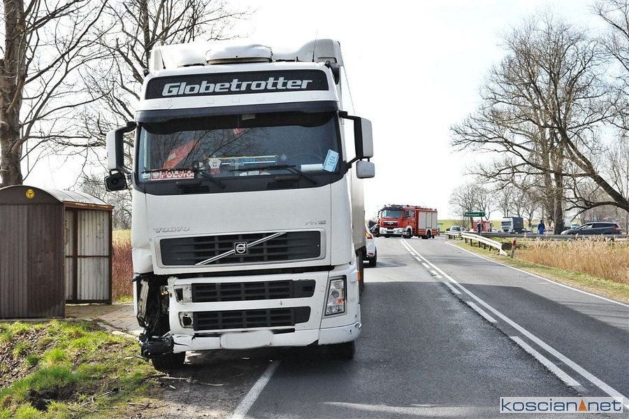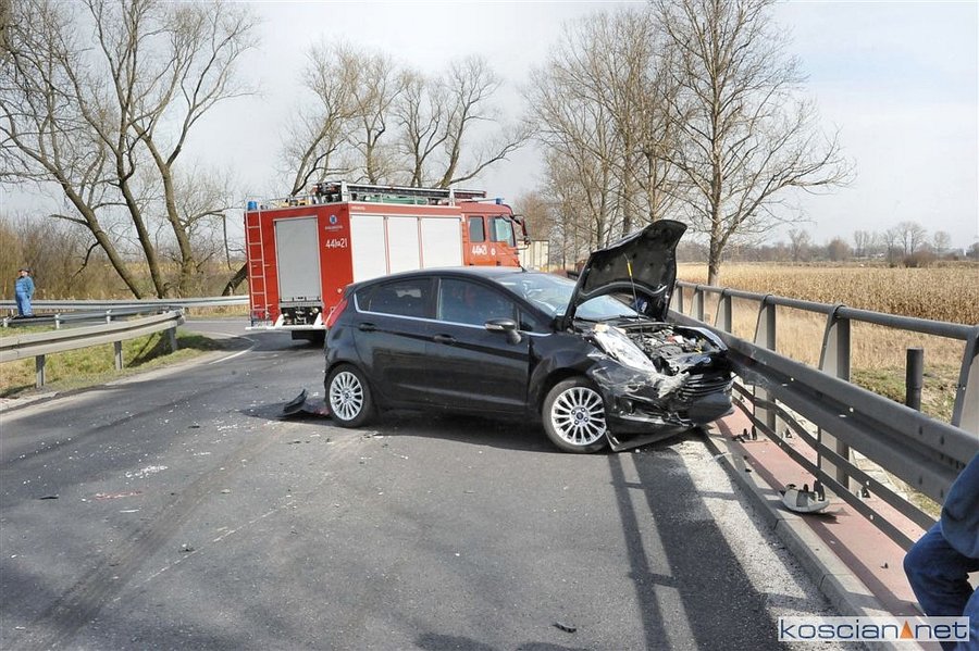 Do zdarzenia doszło wczoraj około godziny 14. na drodze wojewódzkiej 308 pomiędzy Maksymilianowem i Konojadem. Samochód ciężarowy uderzył w tył forda chcącego skręcić do Konojadu. Uderzone auto przemieściło się i rozbiło o bariery energochłonne. W wyniku zderzenia poszkodowana została jedna osoba podróżująca fordem. Na miejsce zadysponowano strażaków z PSP Kościan i Grodzisk Wielkopolski oraz OSP Kamieniec.