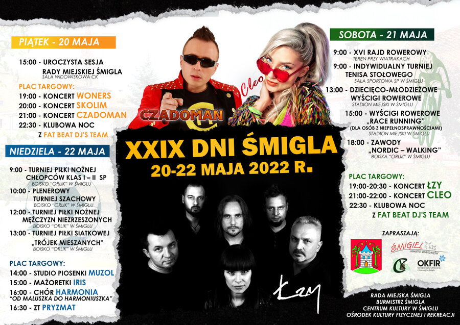 Muzycznymi gwiazdami imprezy będą: Cleo, Czadoman i zespół Łzy. Szczegółowy program na załączonym plakacie.