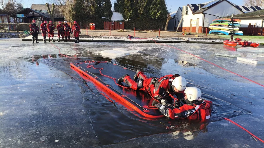 Po raz kolejny Ośrodek Szkolenia Komendy Wojewódzkiej PSP w Poznaniu przy współudziale Komendy Powiatowej PSP w Kościanie przeprowadził szkolenie doskonalące w zakresie ratownictwa lodowego.