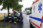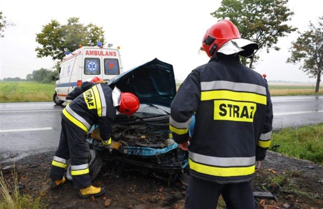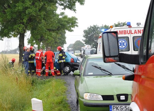 W piątek /23.07./ kilkanaście minut po godzinie 13 na krajowej piątce między Poninem a Kościanem doszło do wypadku. Opel corsa z leszczyńskimi tablicami rejestracyjnymi z zjechał do rowu i uderzył w przejazd na pobliskie pola. Kierującemu corsą pierwszej pomocy udzielili strażacy z kościańskiej PSP a pogotowie ratunkowe zabrało go do szpitala. Blud. fot. Bogdan Ludowicz