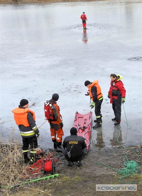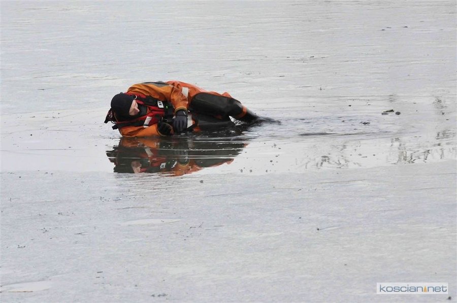 Czasu na pomoc osobie, pod którą załamał się lód zawsze jest mało. Z minuty na minutę wychładza się jej organizm i człowiek słabnie. Prowadzenie działań ratunkowych w takich warunkach ćwiczyli dziś strażacy z kościańskiej Komendy Powiatowej Państwowej Straży Pożarnej w Kościanie.