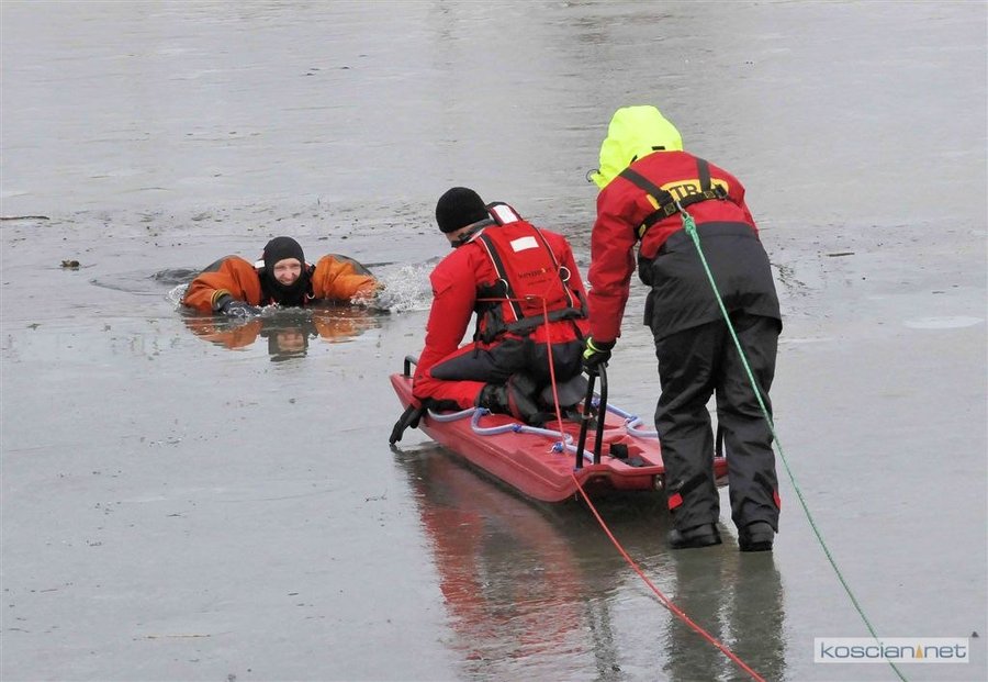 - Oprócz technik z użyciem sań lodowych korzystano także z katamaranu systemu woda–lód. Do zajęć zaproszono także jednostki OSP uwzględniając sprzęt będący aktualnie na ich wyposażeniu – mówi Andrzej Ziegler, zastępca Komendanta Powiatowego PSP w Kościanie. - Strażacy doskonaląc swe umiejętności mają nadzieję, że nie będą musieli z nich korzystać podczas prawdziwej akcji.