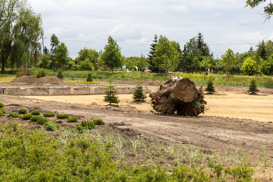 Pozostałości basenu zasypano piaskiem, na który zostanie nawieziona żyzna ziemia pod nasadzenia.