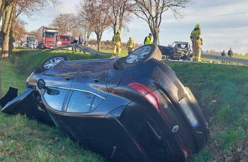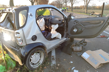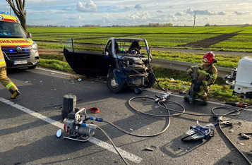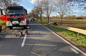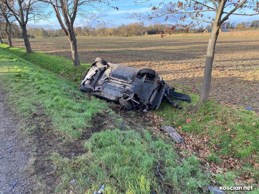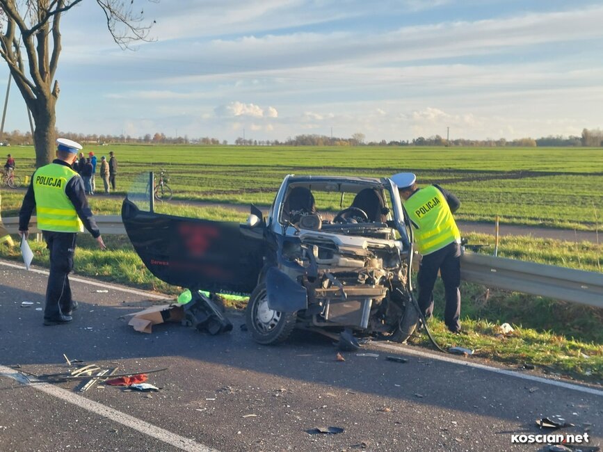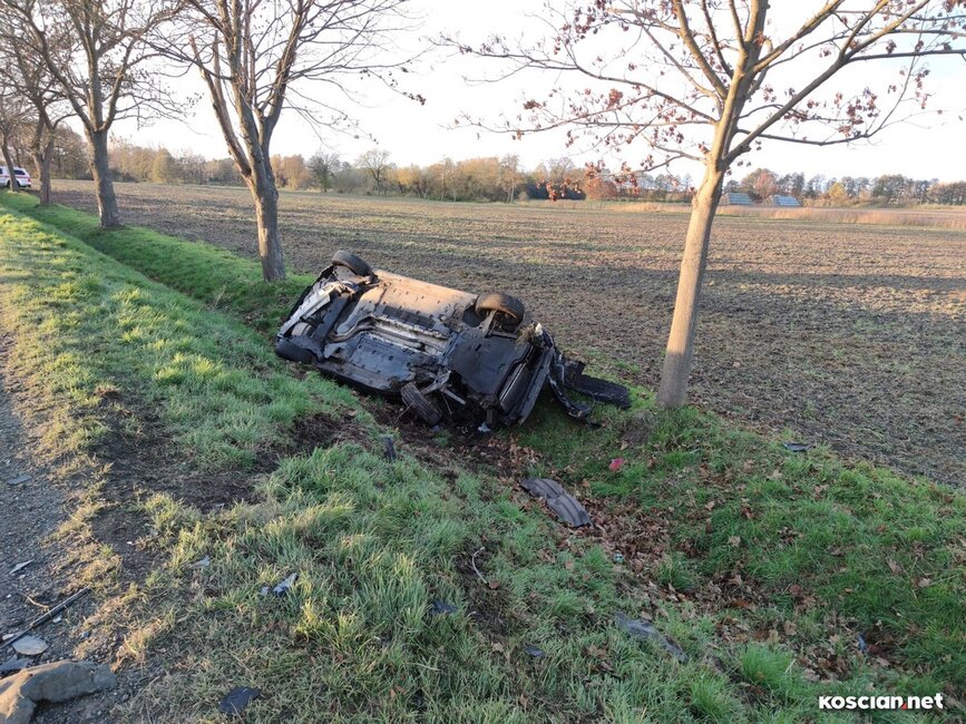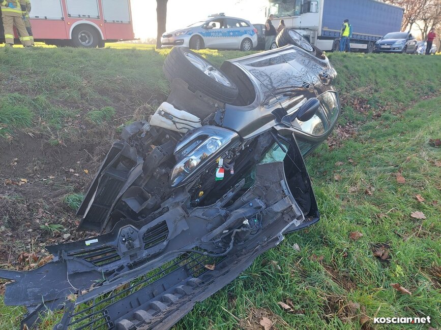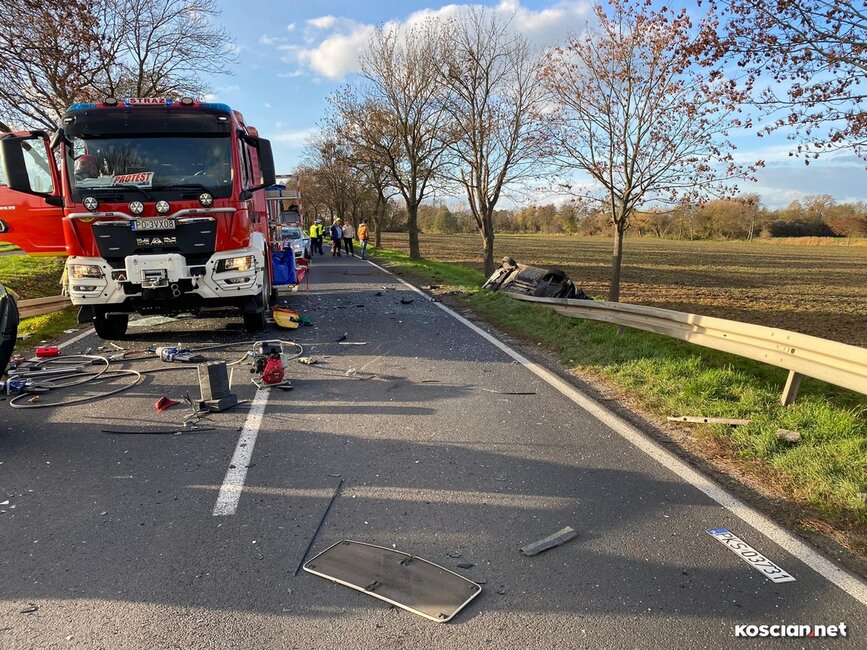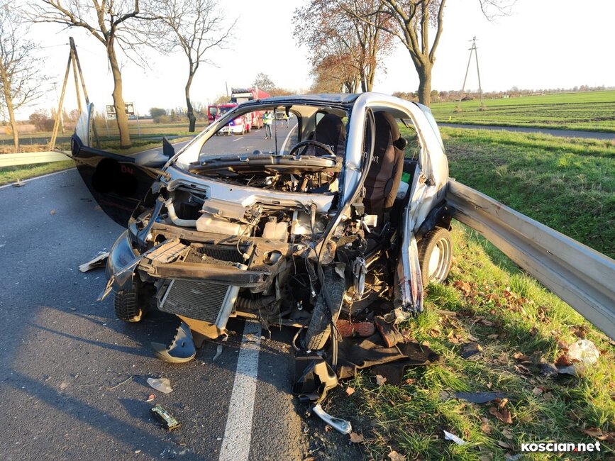 Do wypadku doszło w czwartek, 10 listopada, około godziny 14. Renaultem kierowała 23-letnia mieszkanka gminy Krzywiń, a smarta prowadził 19-latek z gminy Śmigiel. Po czołowym zderzeniu renault dachował w przydrożnym rowie, a kierowca smarta został zakleszczony w aucie. Do szpitala przetransportowano kierowców obu aut.