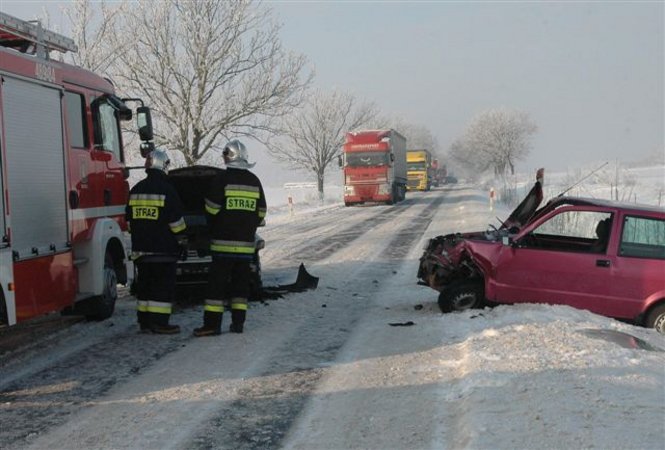 2010-01-05Czołówka na zaśnieżonej drodze (foto)