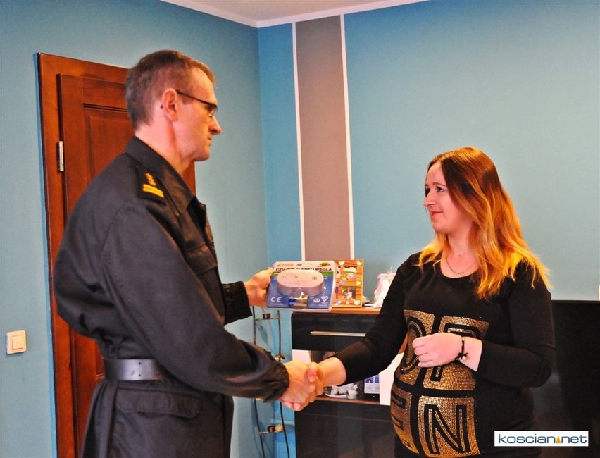 Kościańscy strażacy przekazali detektor tlenku węgla rodzinie, która 18 stycznia zatruła się czadem.