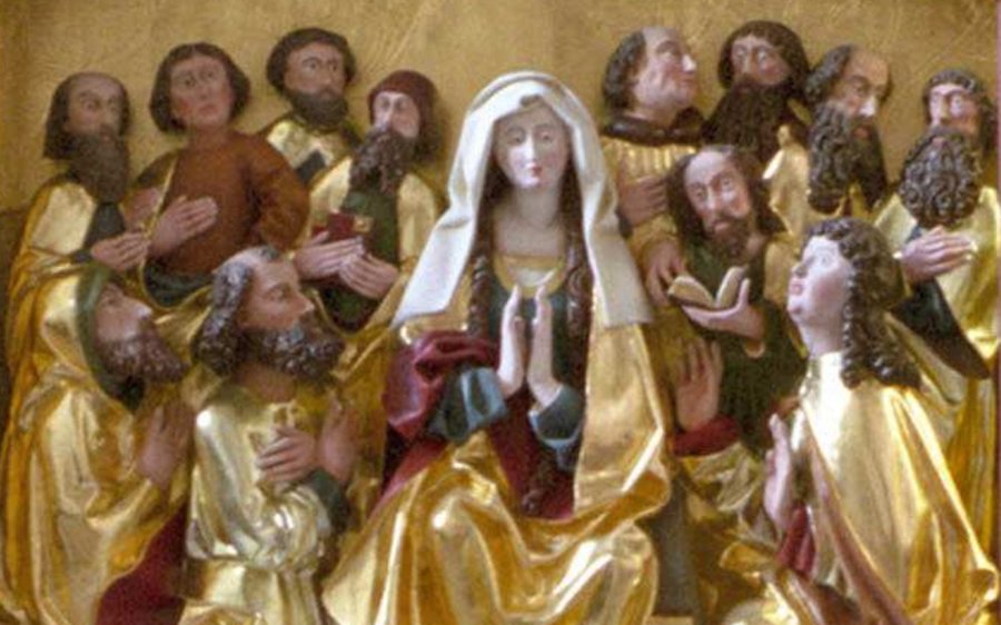 Pierwotnie był to poliptyk, lecz do naszych czasów zachował się jako tryptyk. W środkowej części umieszczona jest postać Marii, o nieco orientalnych rysach twarzy, w otoczeniu 12 apostołów. Na awersach zachowanych skrzydeł wyobrażone zostały sceny pasyjne, z drugiej strony – sceny z dzieciństwa Chrystusa.