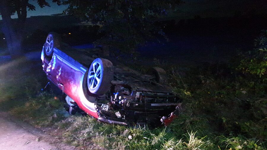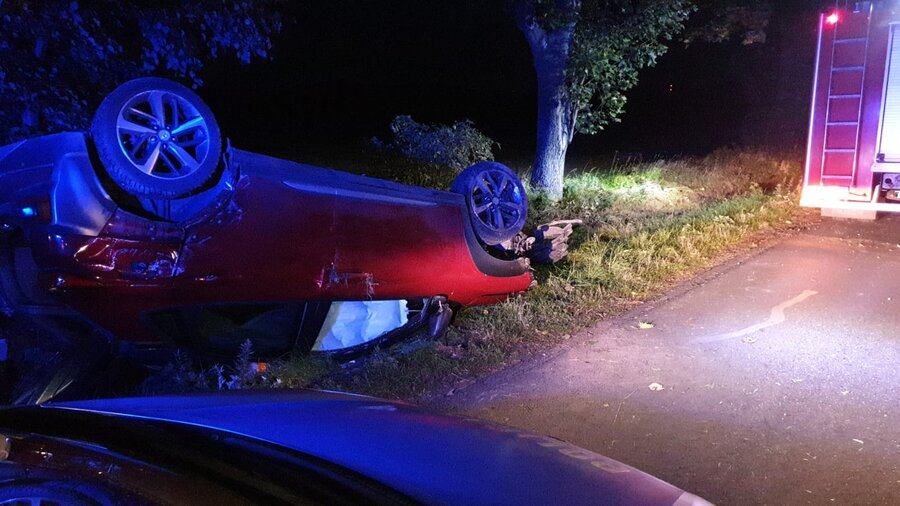 Hyundai prowadzone przez 24-latka zderzyło się z sarnami po czym uderzyło w drzewo i dachowało.