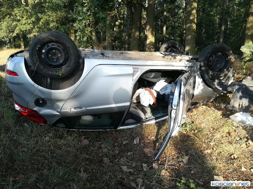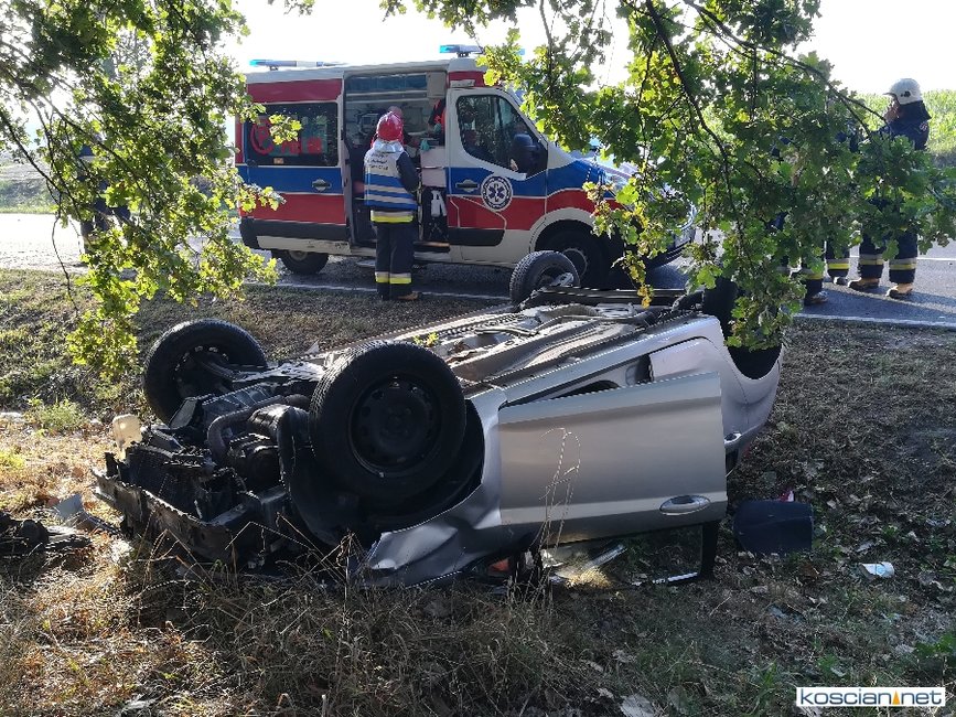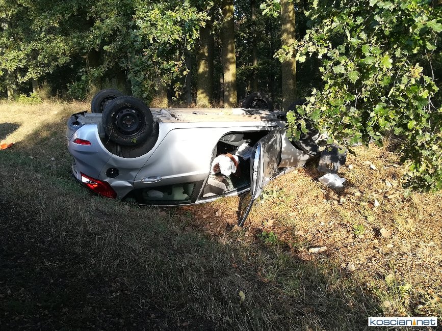 Do kolizji doszło dziś (18 września) na drodze między Czerwoną Wsią (gm. Krzywiń) a Kątami (gm. Osieczna). Autem, które zjechało do rowu i dachowało, podróżowała tylko jedna osoba, która opuściła pojazd o własnych siłach przed przyjazdem ratowników.