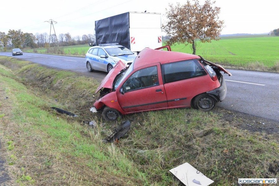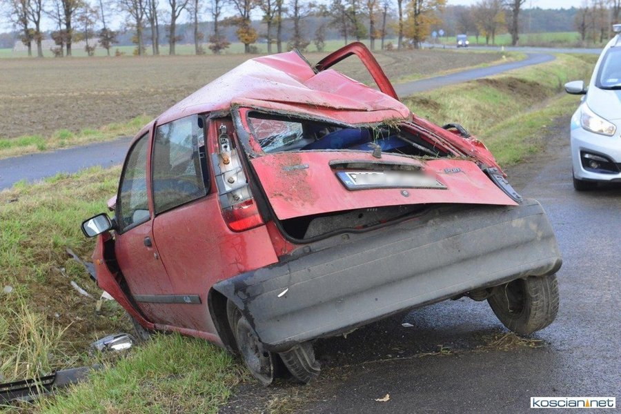Do zdarzenia doszło we wtorek, 17 listopada, około godziny 7.30 na drodze pomiędzy Gryżyną a Nowym Dębcem. Kierująca fiatem punto 25-latka straciła panowanie nad samochodem, który zjechał z drogi i dachował. Kierującą przewieziono do szpitala na badania.