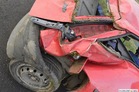Pomiędzy Gryżyną i Nowym Dębcem dachował fiat punto.