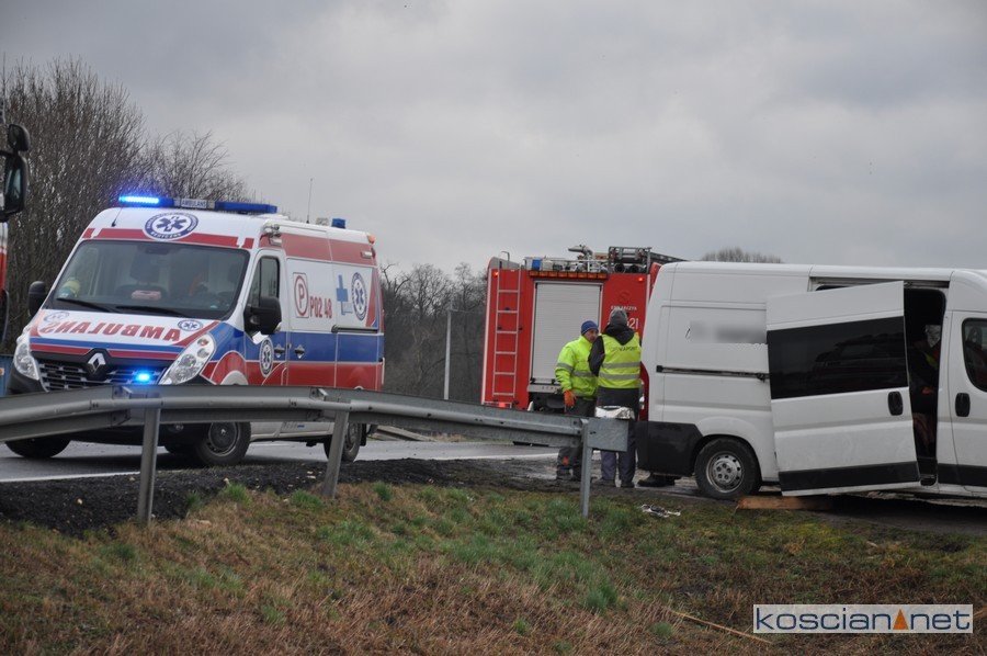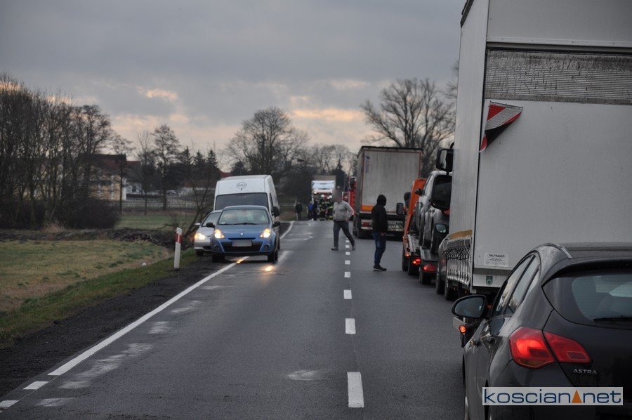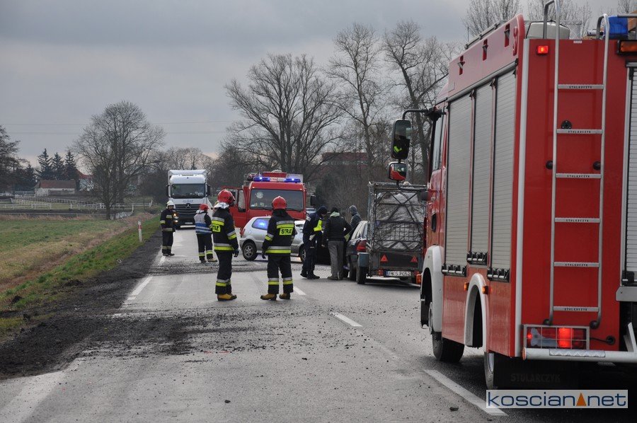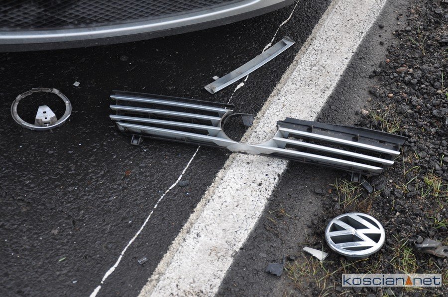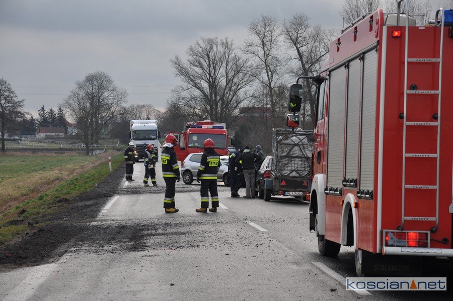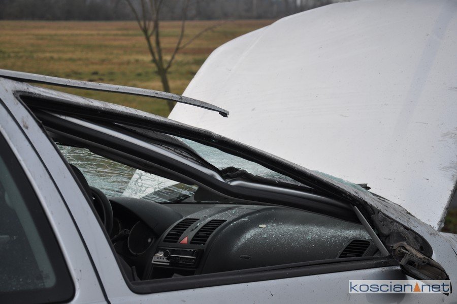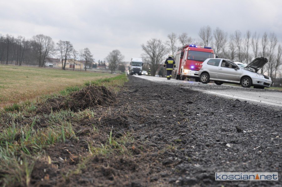 Do zdarzenia doszło w środę, 26 lutego, około godziny 8., na drodze wojewódzkiej nr 308, pomiędzy Kościanem a Racotem. Kierująca volkswagenem polo, 42-letnia mieszkanka powiatu kościańskiego, podczas manewru wyprzedzania zahaczyła o jadącego przed nią opla astrę, a następnie zmusiła do gwałtownego zjechania na pobocze jadące z przeciwnego kierunku renault clio i hondę civic. Sprawczyni kolizji straciła panowanie nad pojazdem, który zjechał z drogi i dachował. Kierującą volkswagenem przewieziono do szpitala na badania.