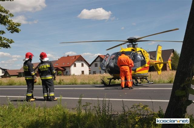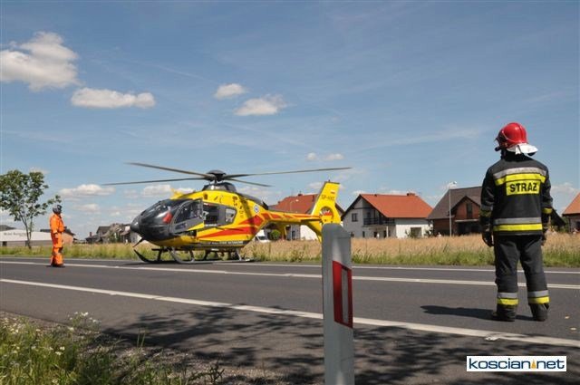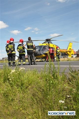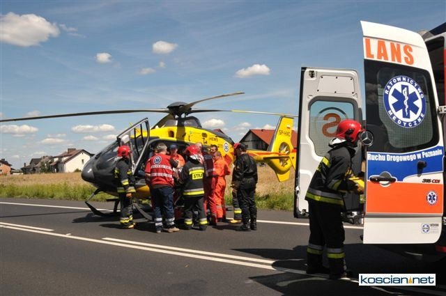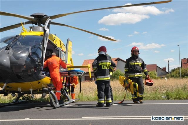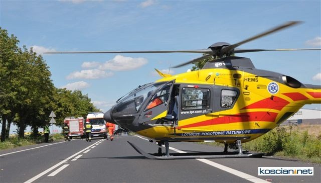 Trzy osoby ucierpiały w wypadku, do którego doszło w poniedziałek (23 lipca) na obwodnicy Kościana. Lotnicze Pogotowie Ratunkowe przetransportowało jedną z nich do szpitala w Poznaniu.
