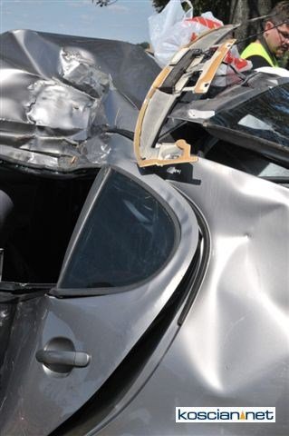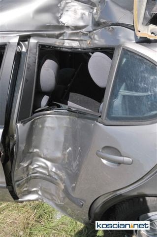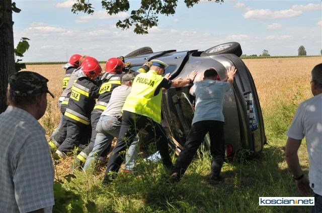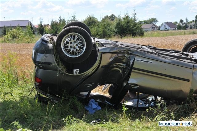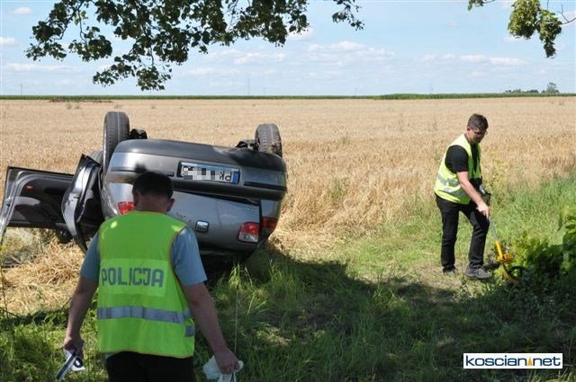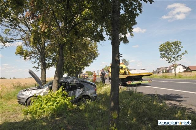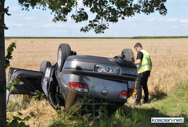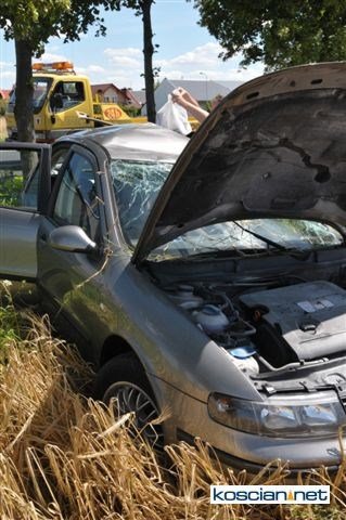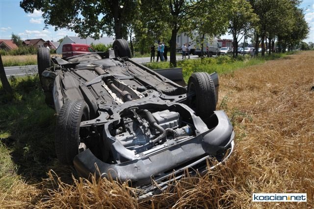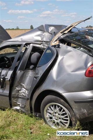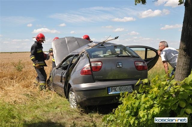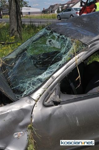 Seat leon na kaliskich numerach rejestracyjnych prowadzony przez 29-letnią kobietę z nieustalonych przyczyn zjechał do rowu po czym uderzył w drzewo i dachował. Kierująca wiozła swoich rodziców. Kobiety z niegroźnymi obrażeniami trafiły do szpitala na obserwację. Mężczyznę z ciężkimi obrażeniami przewieziono śmigłowcem LPR do szpitala w Poznaniu.