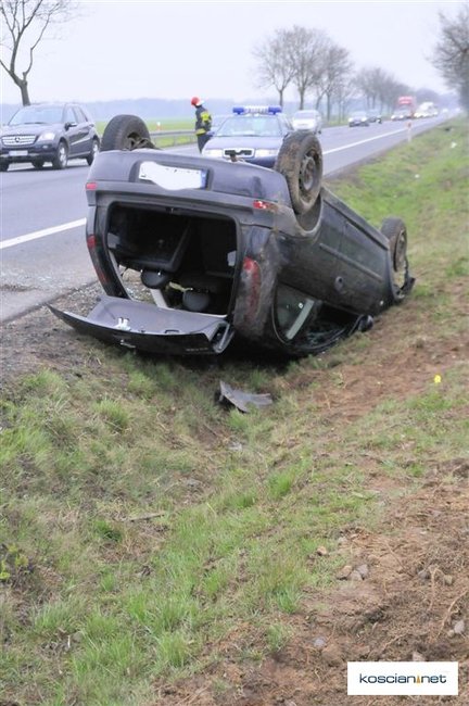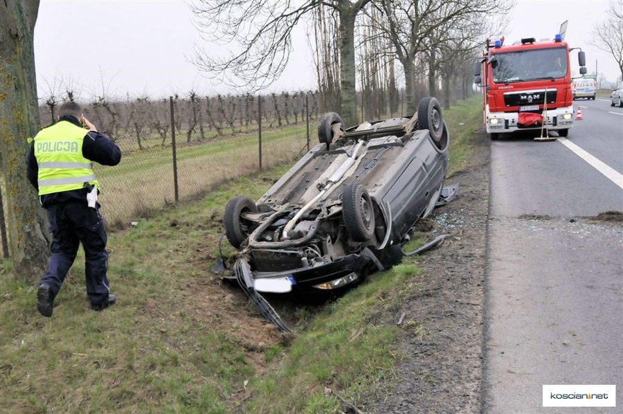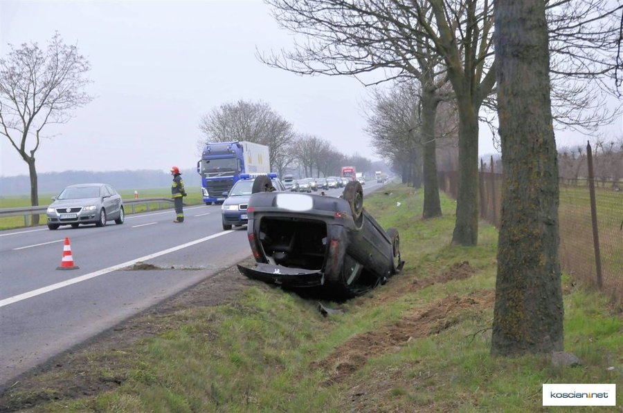 W Wielki Piątek, po godz. 10, kobieta jechała w kierunku Poznania krajową „piątką”. Pomiędzy Kawczynem i Jarogniewicami zjechała z drogi, a następnie dachowała. Została przewieziona do szpitala z niegroźnymi obrażeniami ciała. Ze wstępnych ustaleń policji wynika, że kobieta ucieczką ratowała się przed zderzeniem z jadącym z przeciwnego kierunku pojazdem, który wyprzedzał na trzeciego.