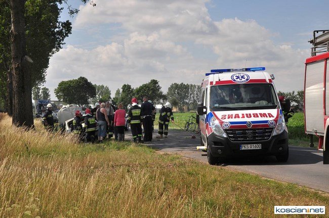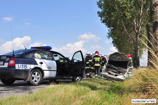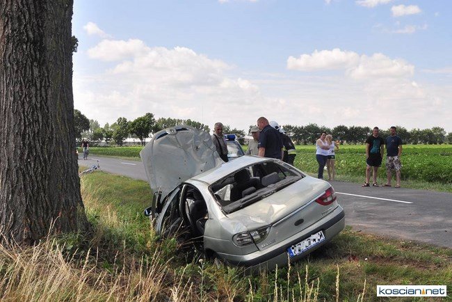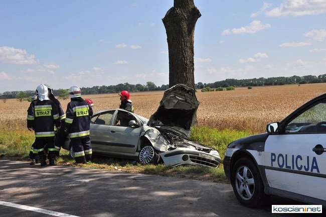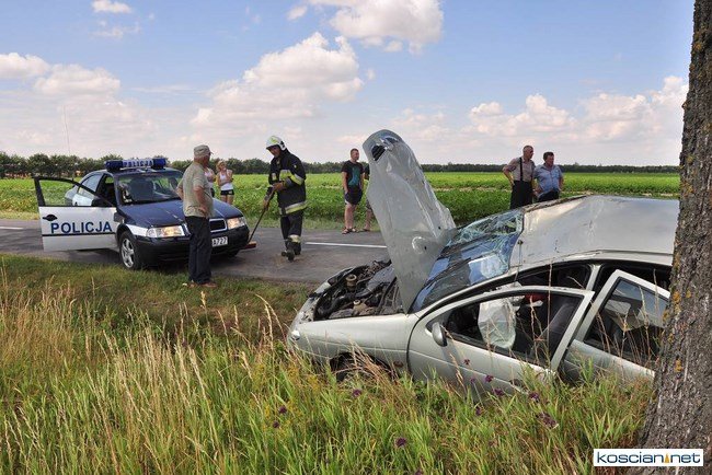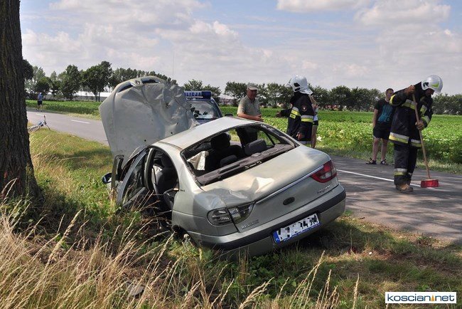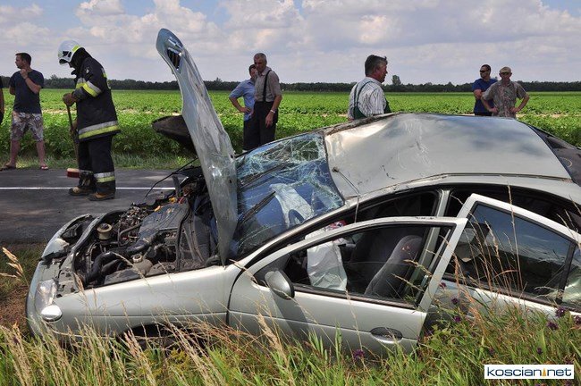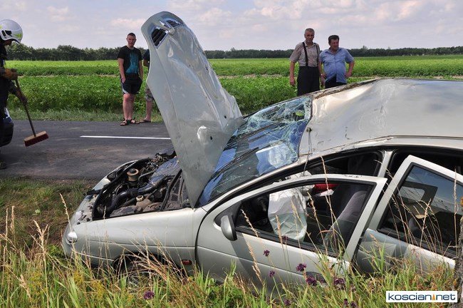 Około godziny 11, w pobliżu Starego Gołębina samochód marki Renault wypadł z drogi do rowu, uderzył w drzewo po czym dachując zatrzymał się na drodze. Kierująca samodzielnie opuściła auto. Pogotowie przetransportowało ją do kościańskiego szpitala na badania. Na miejsce zdarzenia dotarły jednostki OSP z Turwi, Czempinia i strażacy z Kościana.